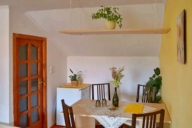 - 1 db 7 fős apartman: 1 db 4 személyes és 1 db 3 fős szoba, nappali, konyha, 2 fürdővel, kábel TV-vel, saját terasszal, internet elérhetőséggel. A nappali (22 m2) a 6 fős apartman része, igy csak az ott lakó vendégek használhatják.