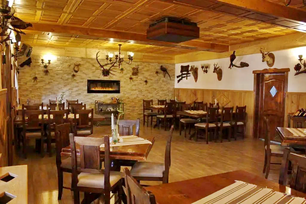 - Rusztikus-vadász stílusú szalon (40 férőhely) – hagyományos hangulatú.