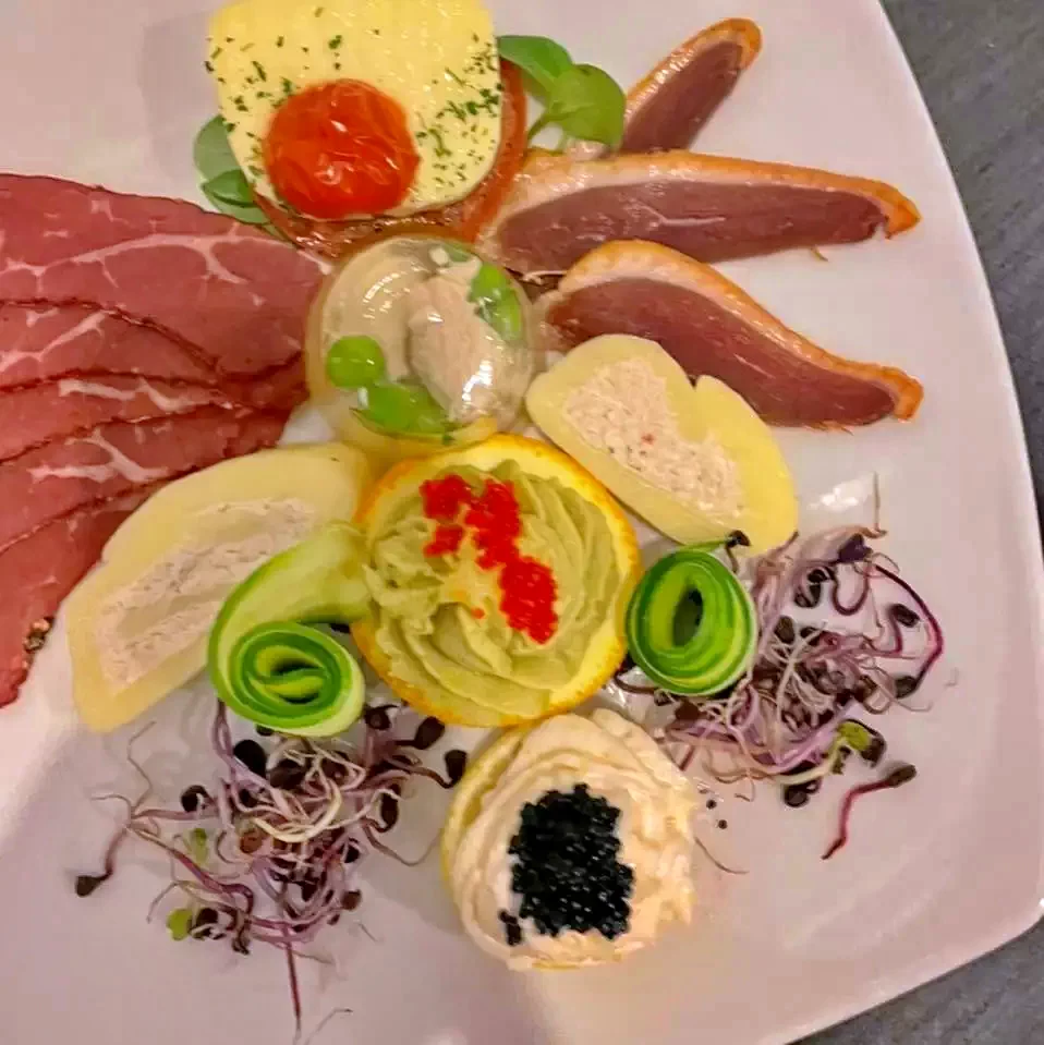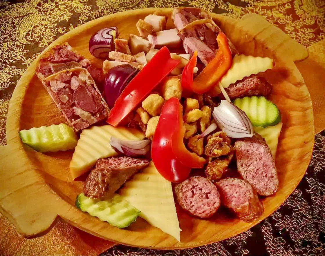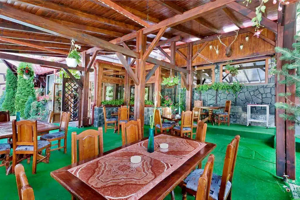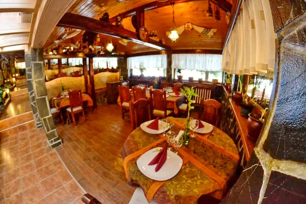 Az étlap hagyományos román, vadételeket és nemzetközi fogásokat kínál, vegetáriánus, laktózmentes és gluténmentes opciókkal.