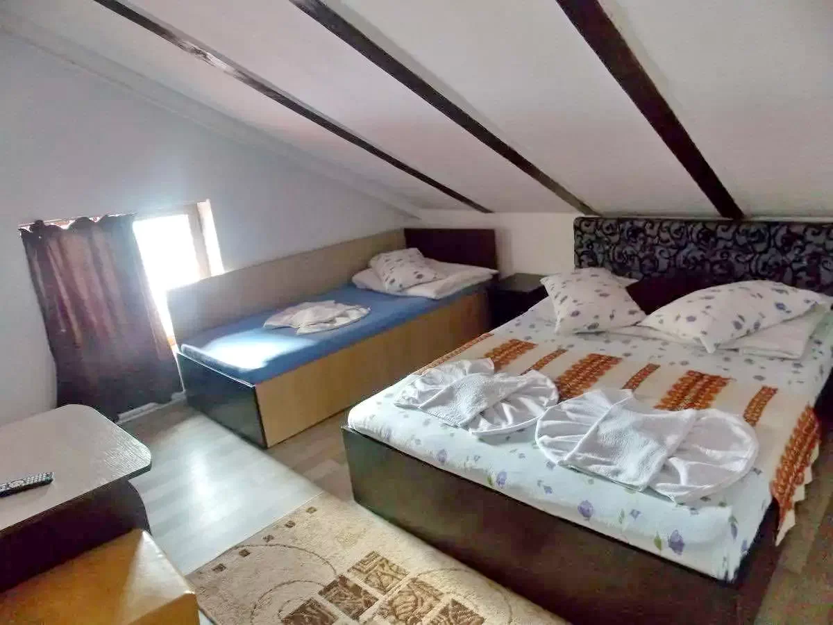 - 2 számú szoba: háromszemélyes, saját fürdőszobával (egyszemélyes ágy, franciaágy);
