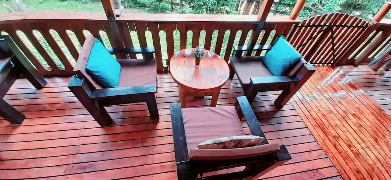 A vendégházat övező hagyományos veranda a meghitt társalgások, a pihenés és a közös étkezés élményével szolgálhat.