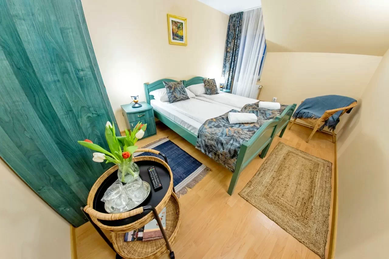 - Vendégei különböző típusú szobák közül választhatnak, mint például 4 db standard kétágyas, 2 db deluxe kétágyas szoba, egy háromágyas szoba, valamint egy öt férőhelyes apartman.