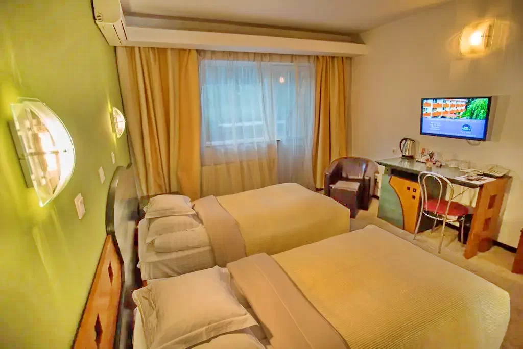 - 32 db. 3 csillagos szobában 64 fő részére kínál megfelelő szállást. Minden szobában saját zuhanyzóval ellátott fürdőszoba LCD TV, telefon, mini bár, összetolható ágyak, ingyenes WI-FI található.