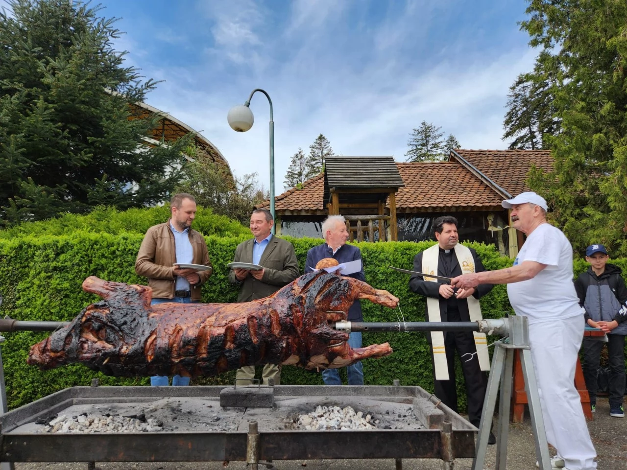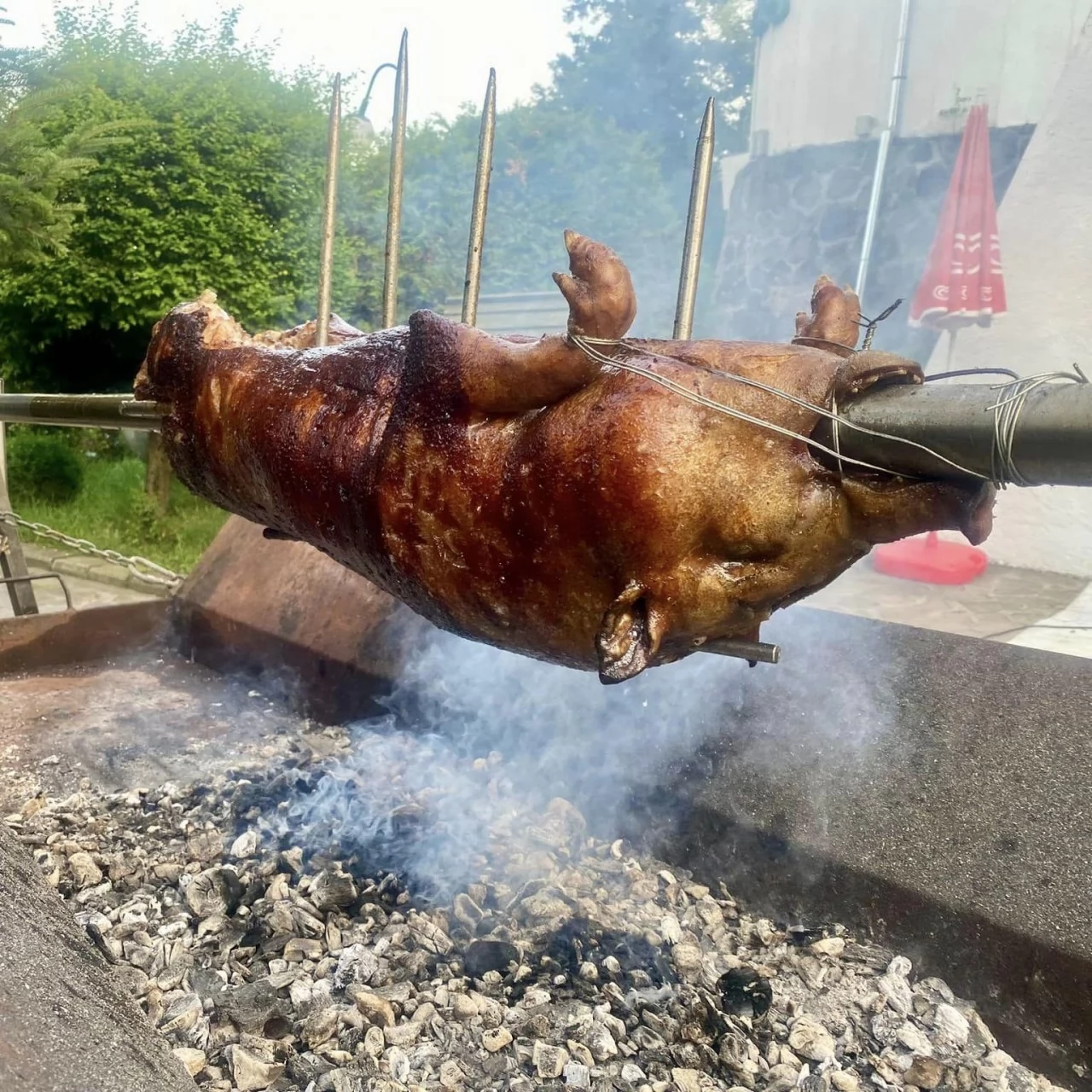 Malac\ ökör sütés a vendégekkel