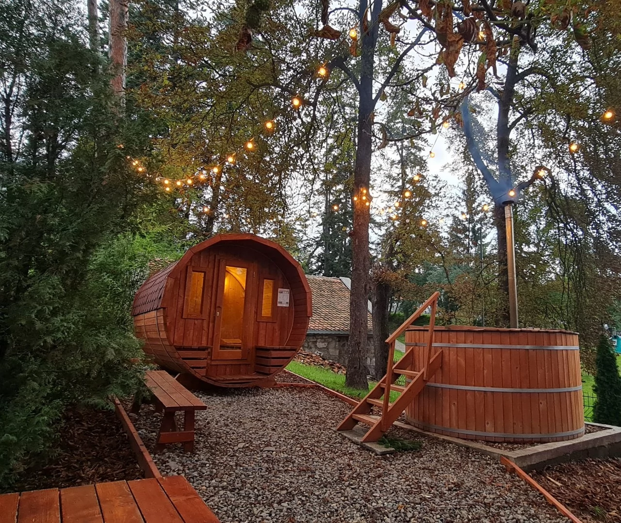 - Nyáron a szálloda előtti privát park terasza, illetve a napozóteraszos kert szolgálja szállóvendégei kényelmét, ahol igény szerint a szabadtéri kemencében sült, válogatott fogások fogyaszthatóak.