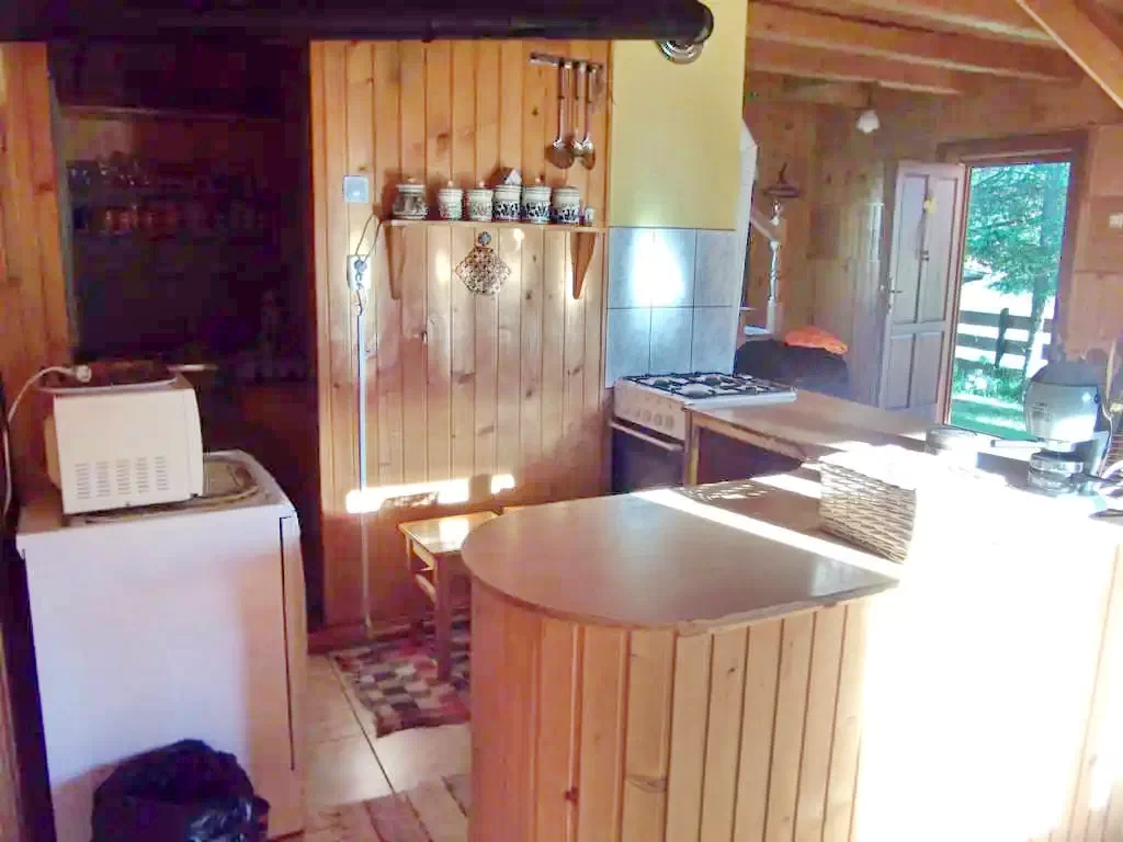 Konyhai eszközök: Fás és palackgázos tűzhely, mosogatógép, hűtőszekrény, edények, evőeszközök.