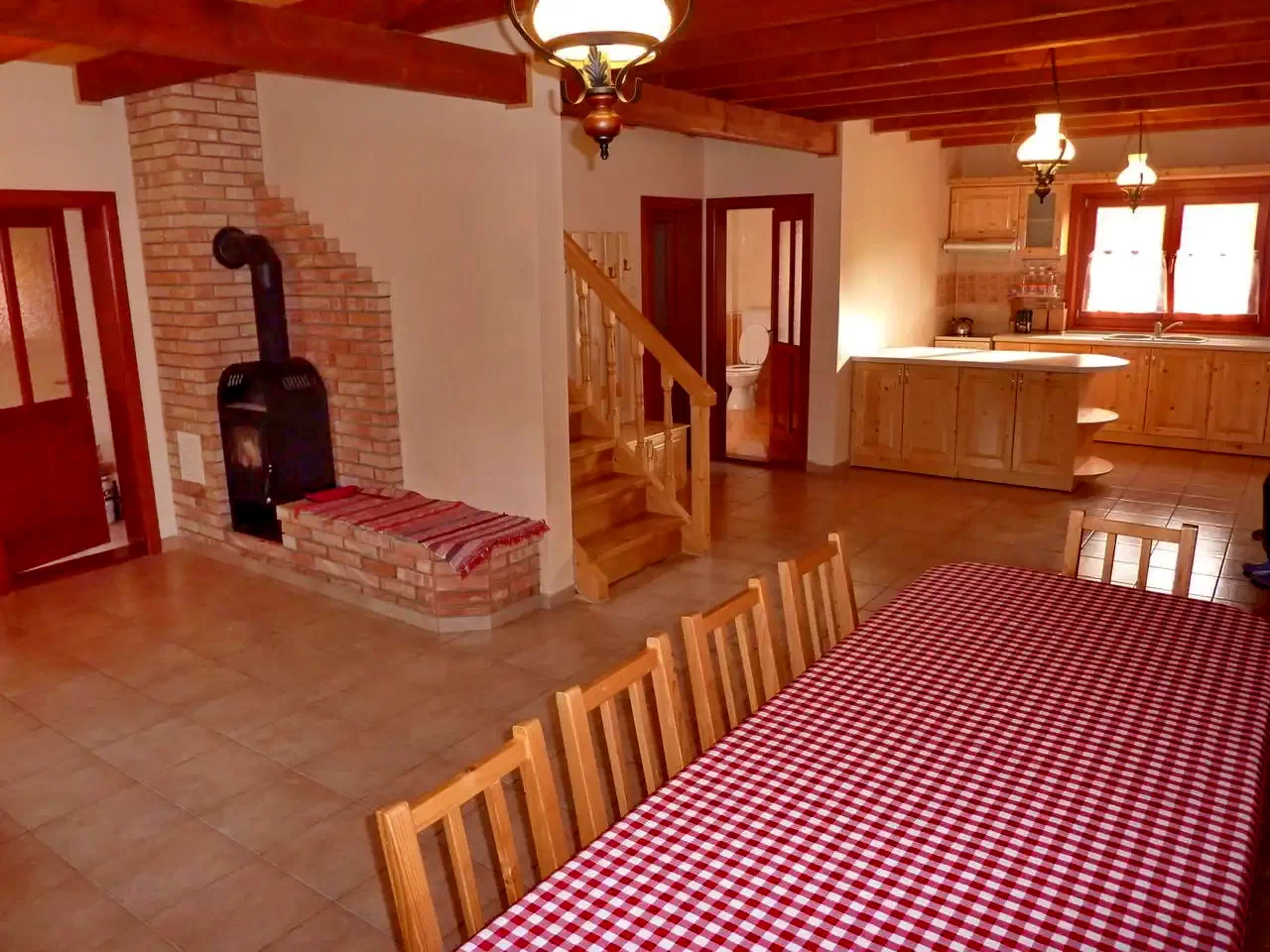 - A nappali-ebédlő tágas étkezőasztala tökéletes családi vagy baráti étkezésekhez.