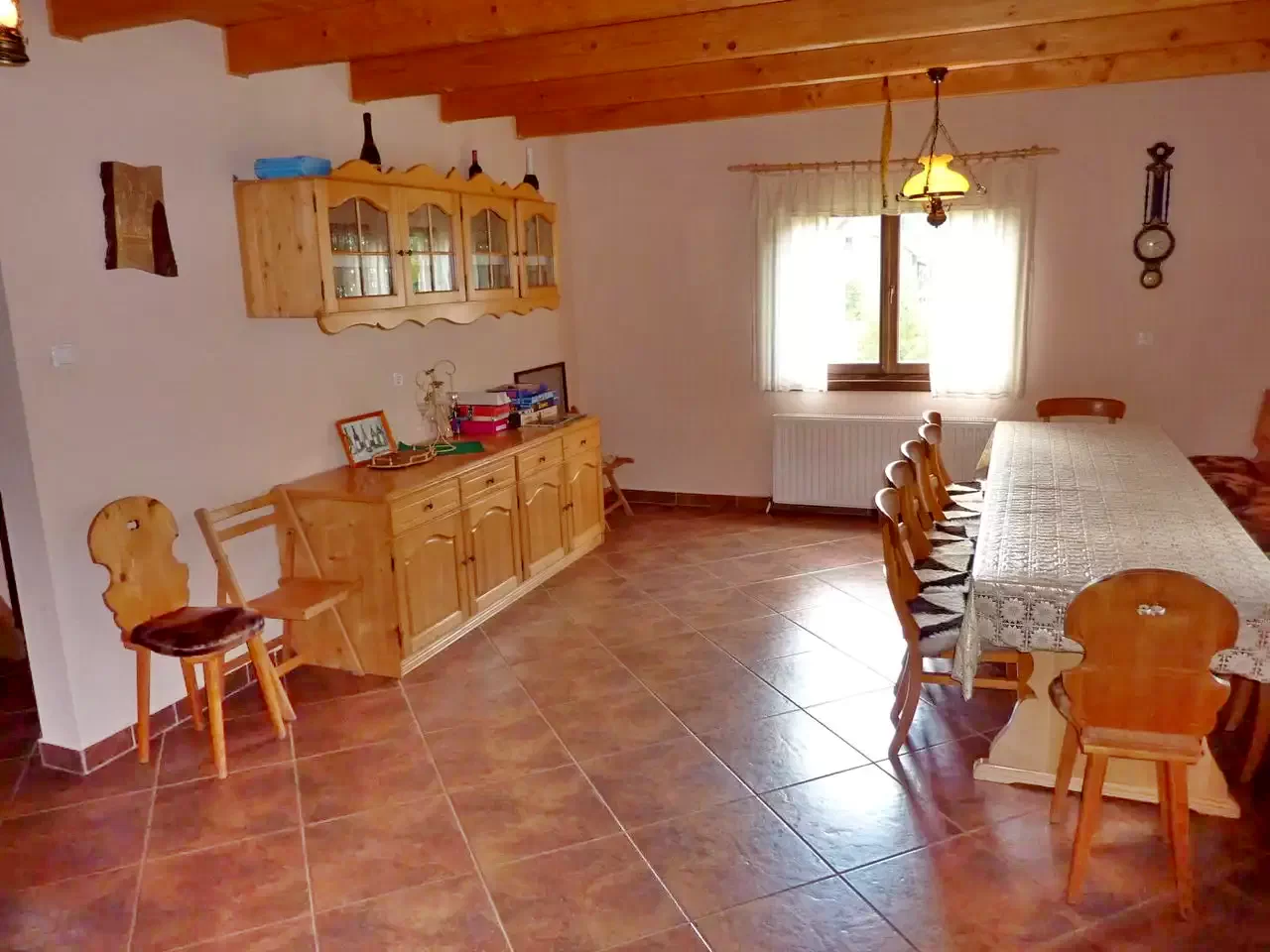 - A nappali-ebédlő tágas étkezőasztala tökéletes családi vagy baráti étkezésekhez.