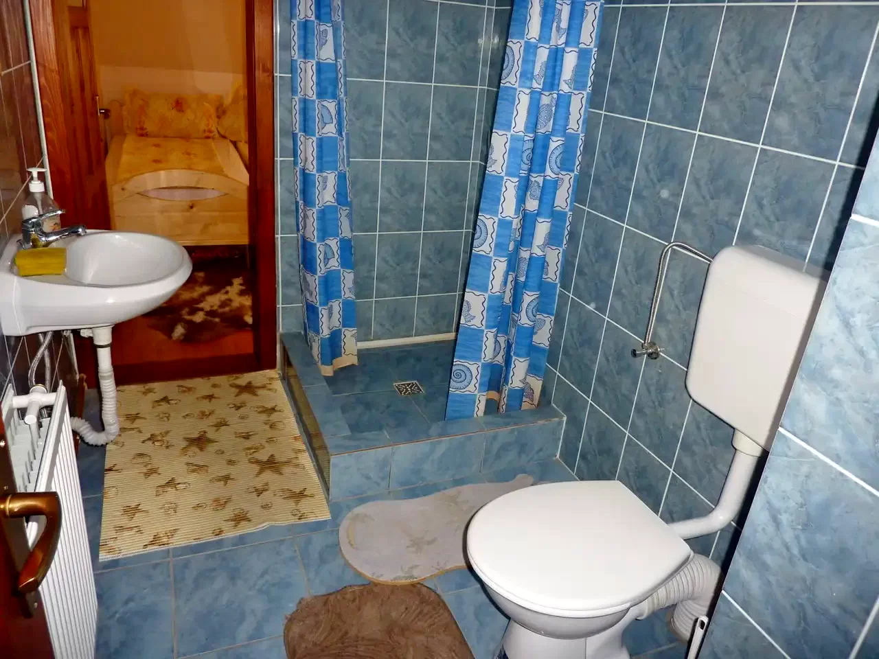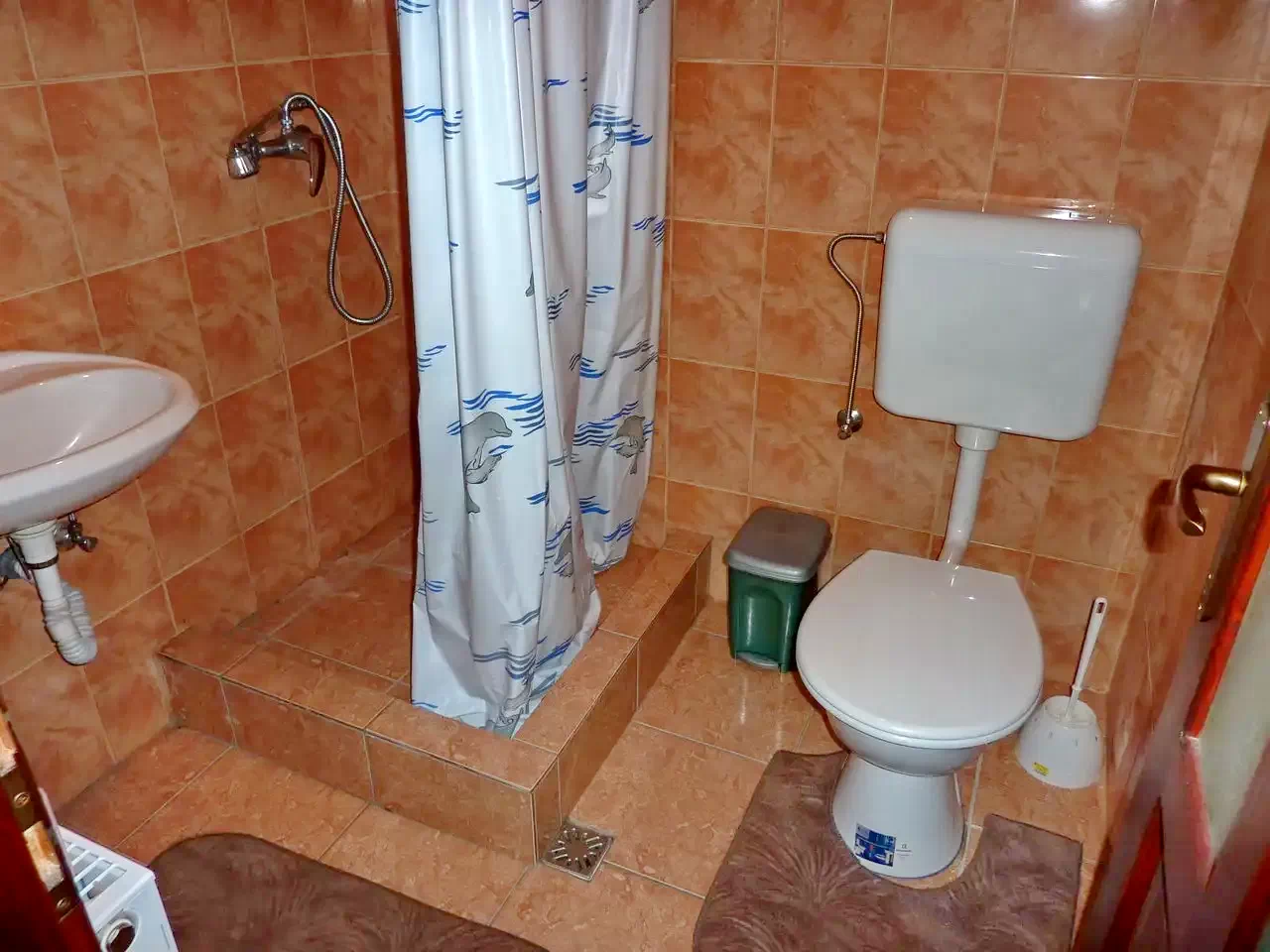 Fürdőszoba: Zuhanykabinnal, WC-vel, kézmosóval.