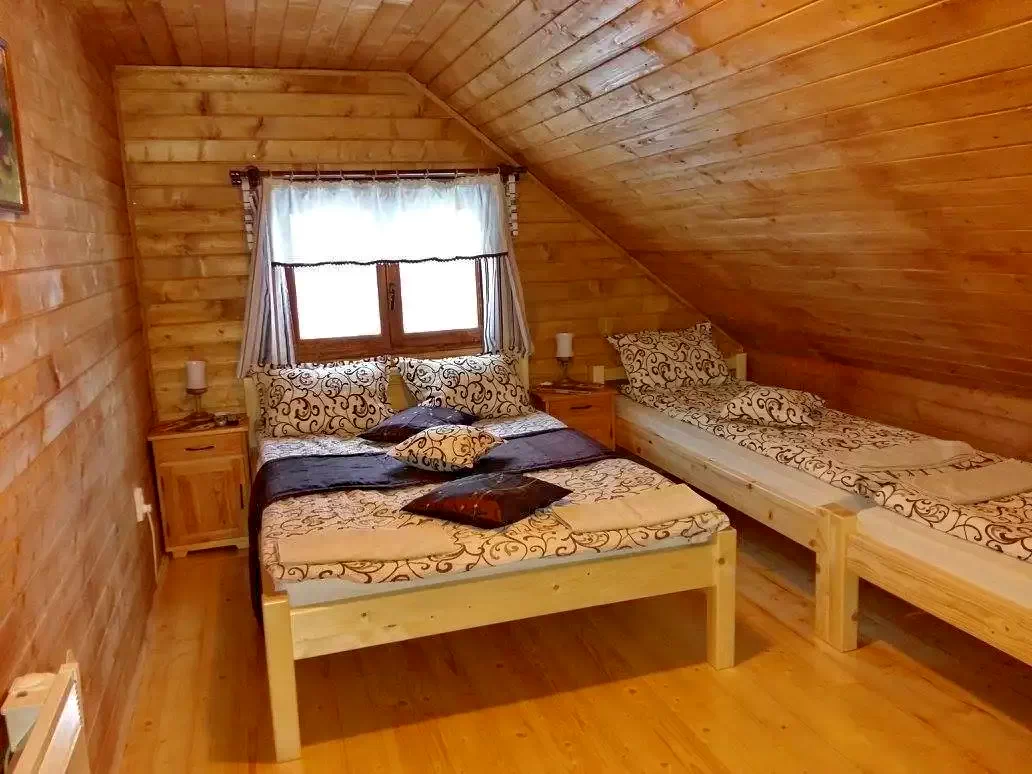 szoba: 1 kétszemélyes ágy + 1 egyszemélyes ágy + 1 pótágy (4 fő)