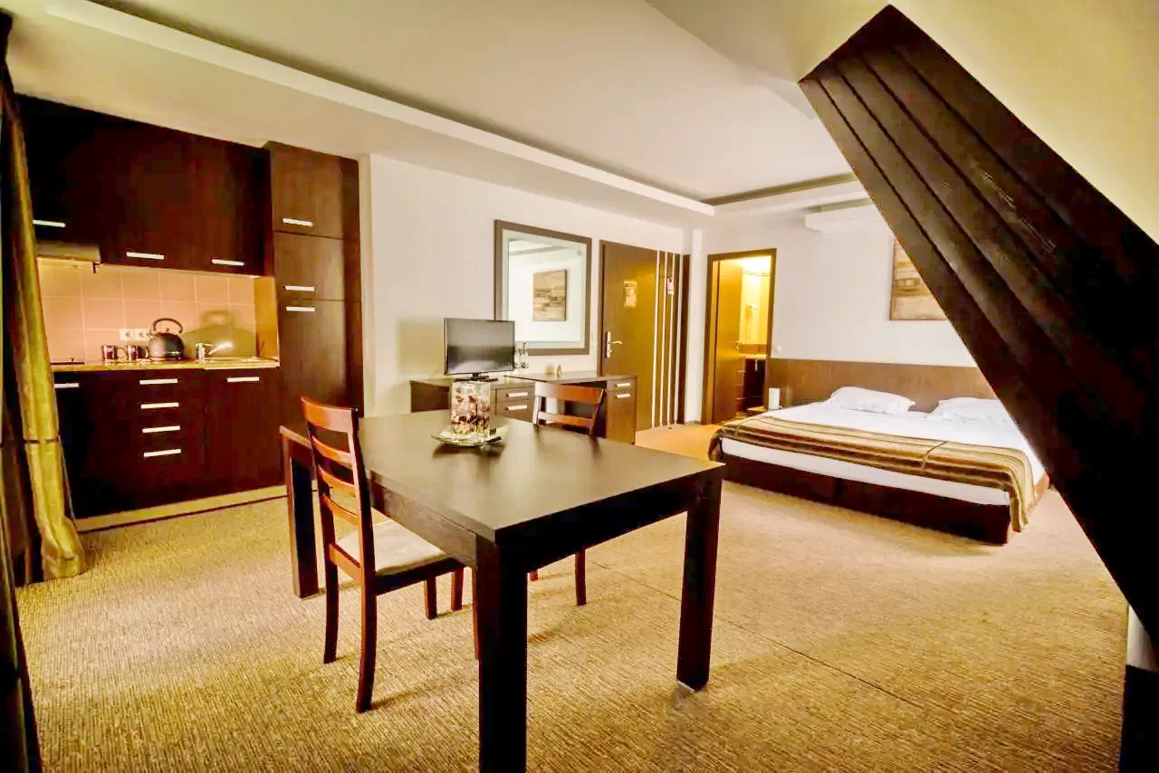 - A szálloda 54 személy számára kínál szállást 4 csillagos komforttal, Búcsecs-hegységre néző szobákban, melyek mindegyike saját fürdőszobával (benne piperecikkekkel, hajszárítóval és fürdőlepedőkkel), erkéllyel, mini bárral, széf és íróasztallal, internettel, tv-vel és telefonnal felszerelt.