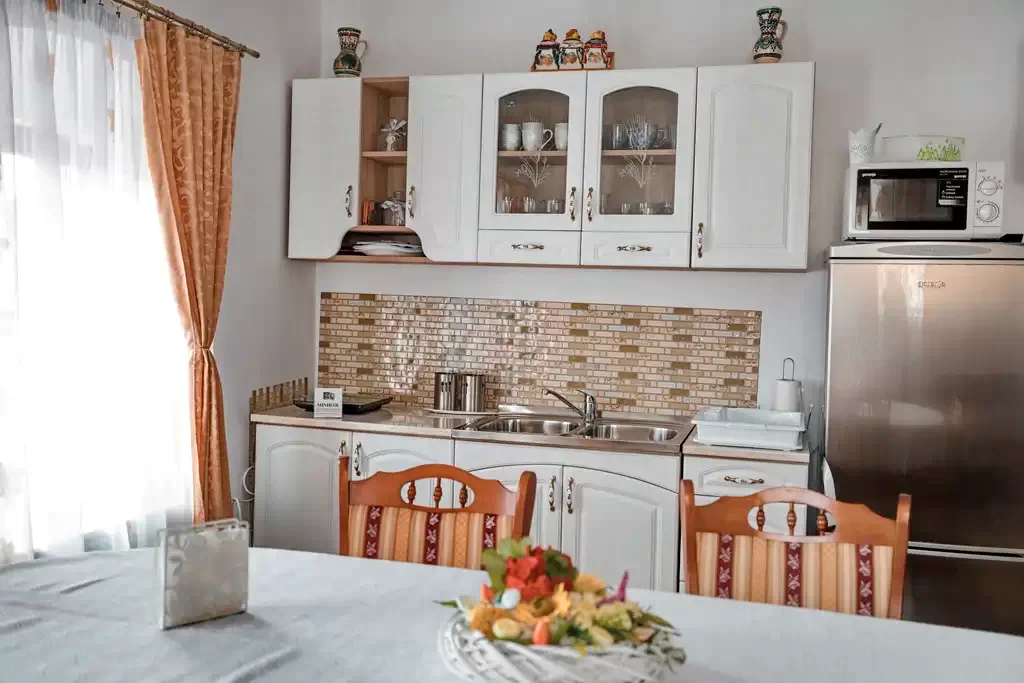 - A panzió étkezővel, tágas nappalival és teljesen felszerelt konyhával rendelkezik, amely lehetőséget biztosít az önellátásra.