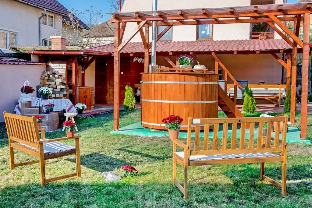 Szállás Szilveszter Szék Panzió | Wellness: Dézsafürdő; Vendégkonyha, ellátás, nappali-étkező, WIFI, terasz, kert-udvar, pavilon, kemence, grill, bogrács, játszótér, parkoló | 7km Szamosújvár,14km Mikolai-kolostor, 17km Kérőfürdő, 52km Erdőfeleki-sípálya