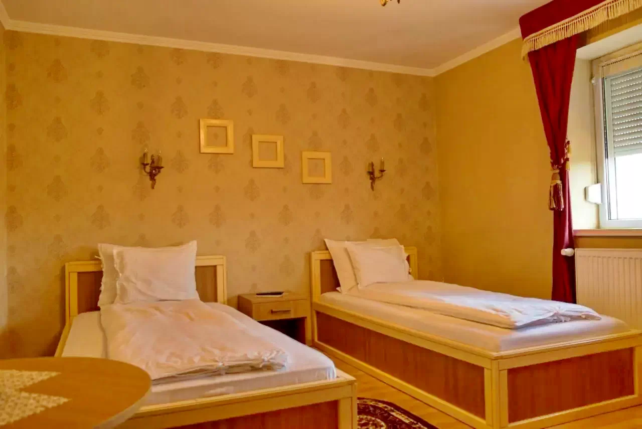 - 2 db kétágyas szoba: Összetolható egyszemélyes ágyakkal.