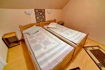 - 13-as szoba: 2 szimpla ágy, saját fürdőszoba