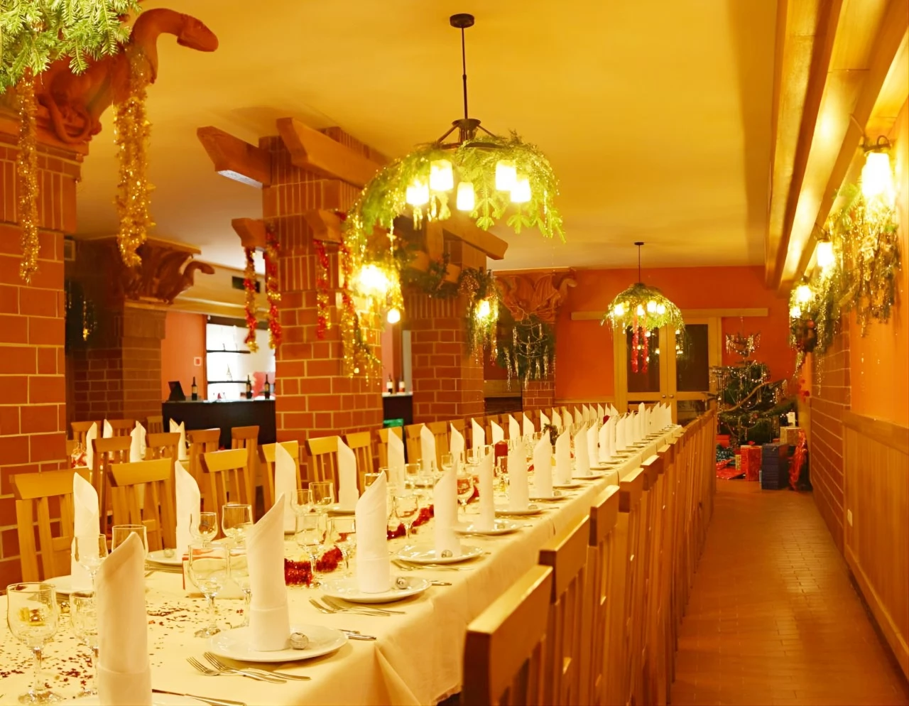 - Szilveszteri ünnepi vacsora (ünnepi ötfogásos menü, welcome drink, pezsgő, ásványvíz, kávé, cappuccino), élő zene