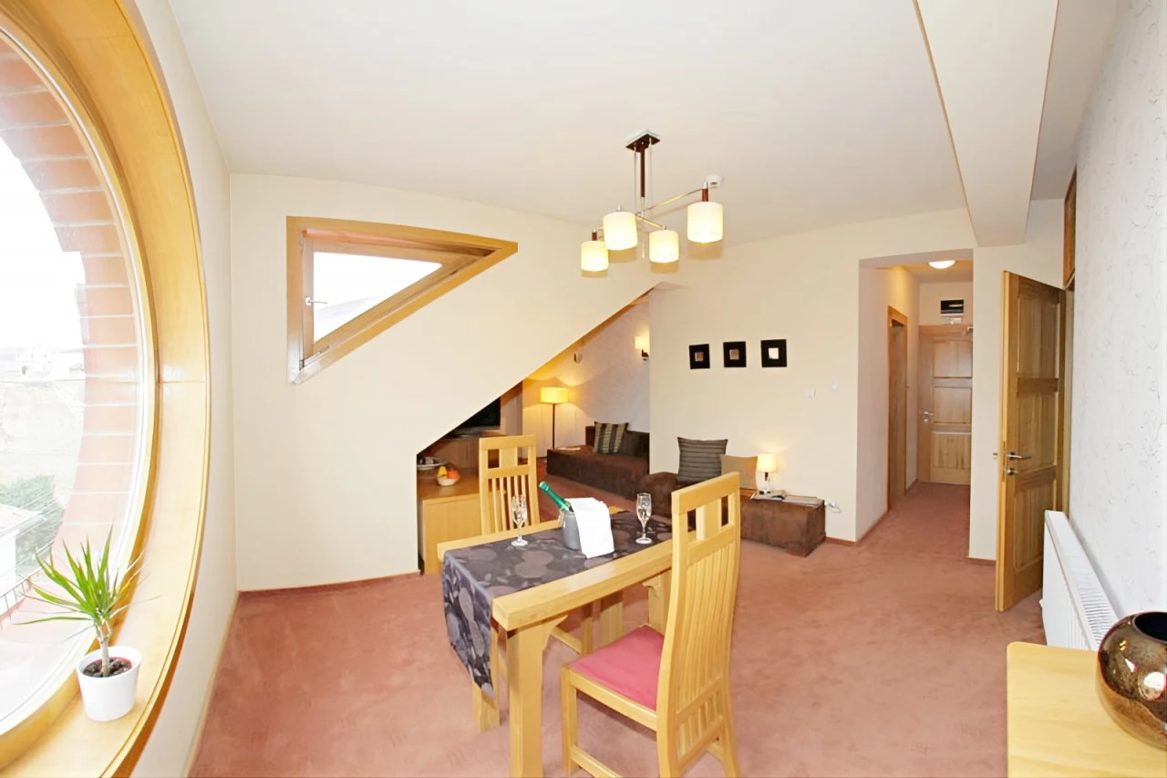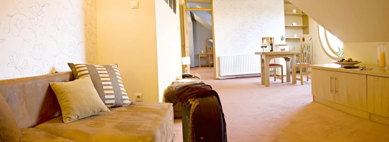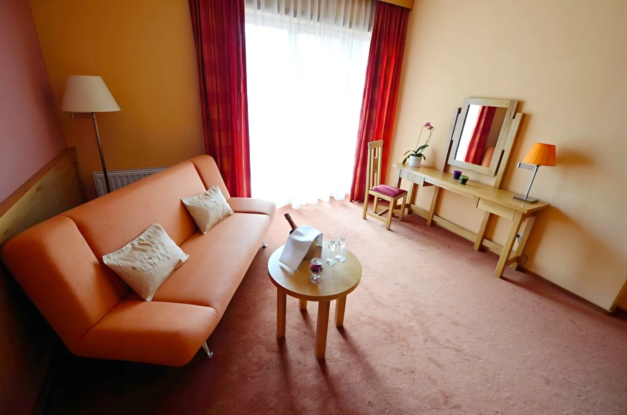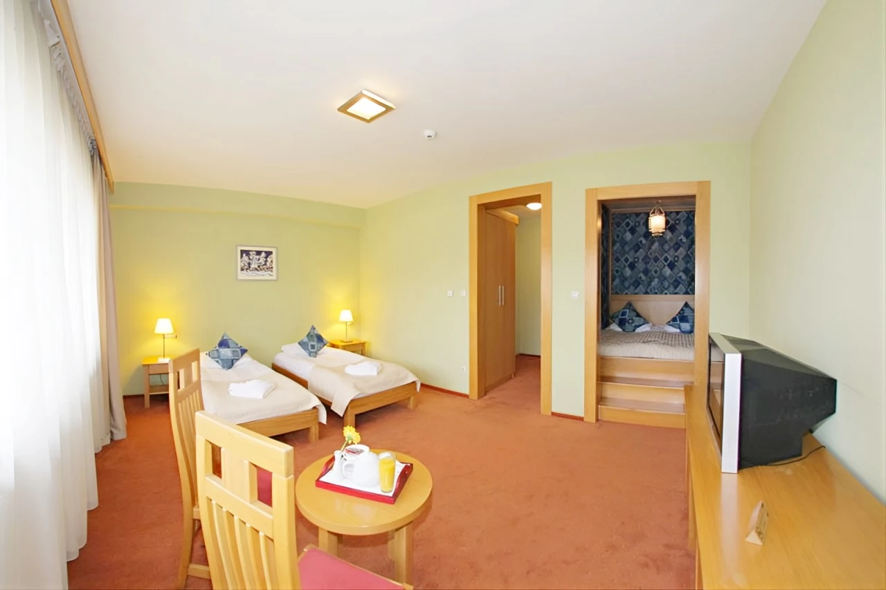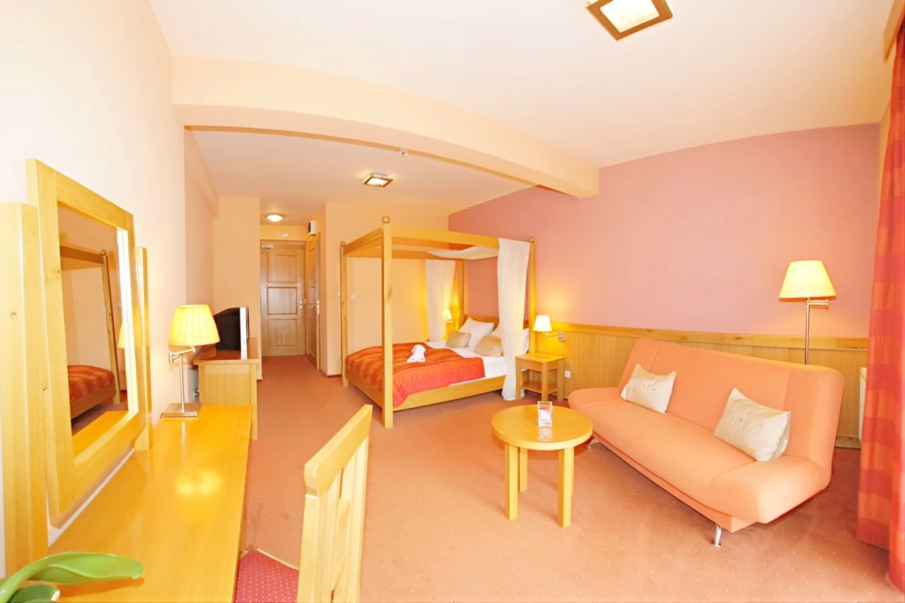 1 lakosztály pezsgőfürdővel (hálószobába francia ágy, nappaliba kanapé)