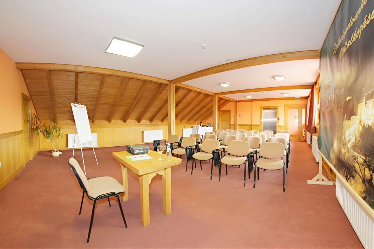 - Konferenciaterem: tágas, felszerelt és világos konferenciaterme kiválóan alkalmas üzleti megbeszélésekre, prezentációkra vagy találkozókra.