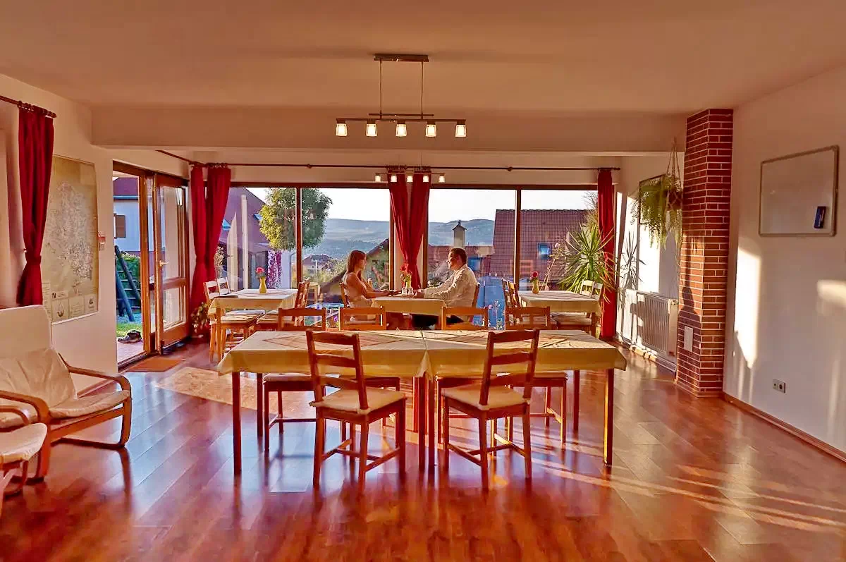 Szállás Szilveszter Székelyudvarhely Panzió*** | Panorámás kilátással a városra, a Hargita-hegységre, Wellness: dézsafürdő, konyha, nappali, Wi-Fi, ebédlő, terasz, kert-udvar, grill, játszóhely, parkoló | 20km Homoródfürdő-sípálya, 21km Zetelaka Viztározó