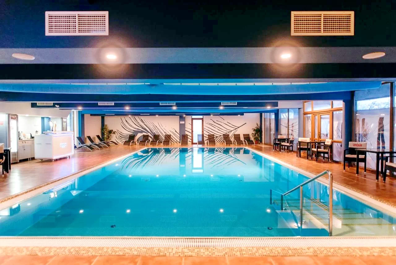 - A wellness részleg fő eleme egy méretes fedett medence, ahol minden csobbanni és úszni vágyó gondtalanul lubickolhat. És, hogy teljes legyen a kényelem, a medenceparti nyugágyak mellett egy bár is található. A nagy medence mellé társul egy kisebb is, ahol a gyerekek teljes biztonságban pancsolhatnak, továbbá egy pezsgőfürdő, egy finn szauna, egy törökfürdő (gőzszoba) és egy hideg vizes merülő.