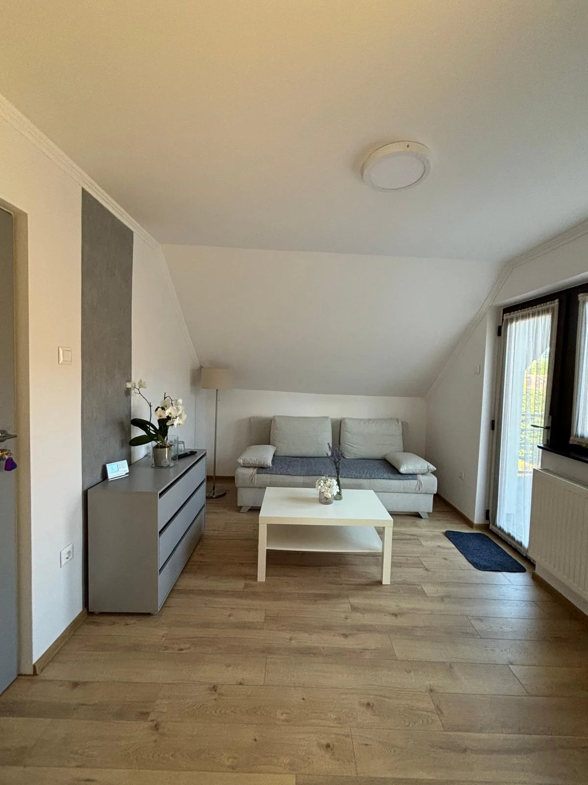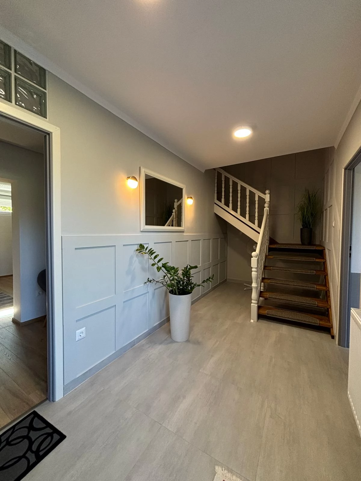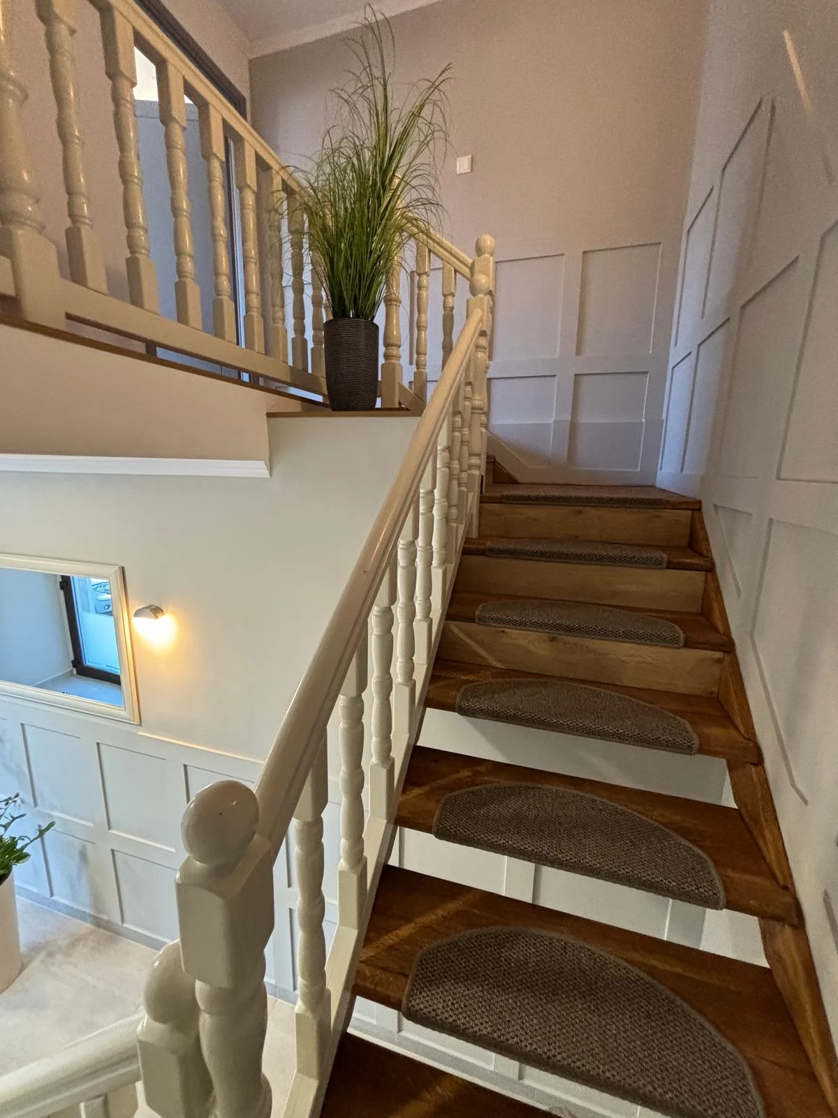 - 1 emeletes négyszemélyes apartman, a földszinten konyhával, az emeleten egy hálószoba, benne franciaágy, egy kihúzható kétszemélyes kanapé és fürdőszoba található.