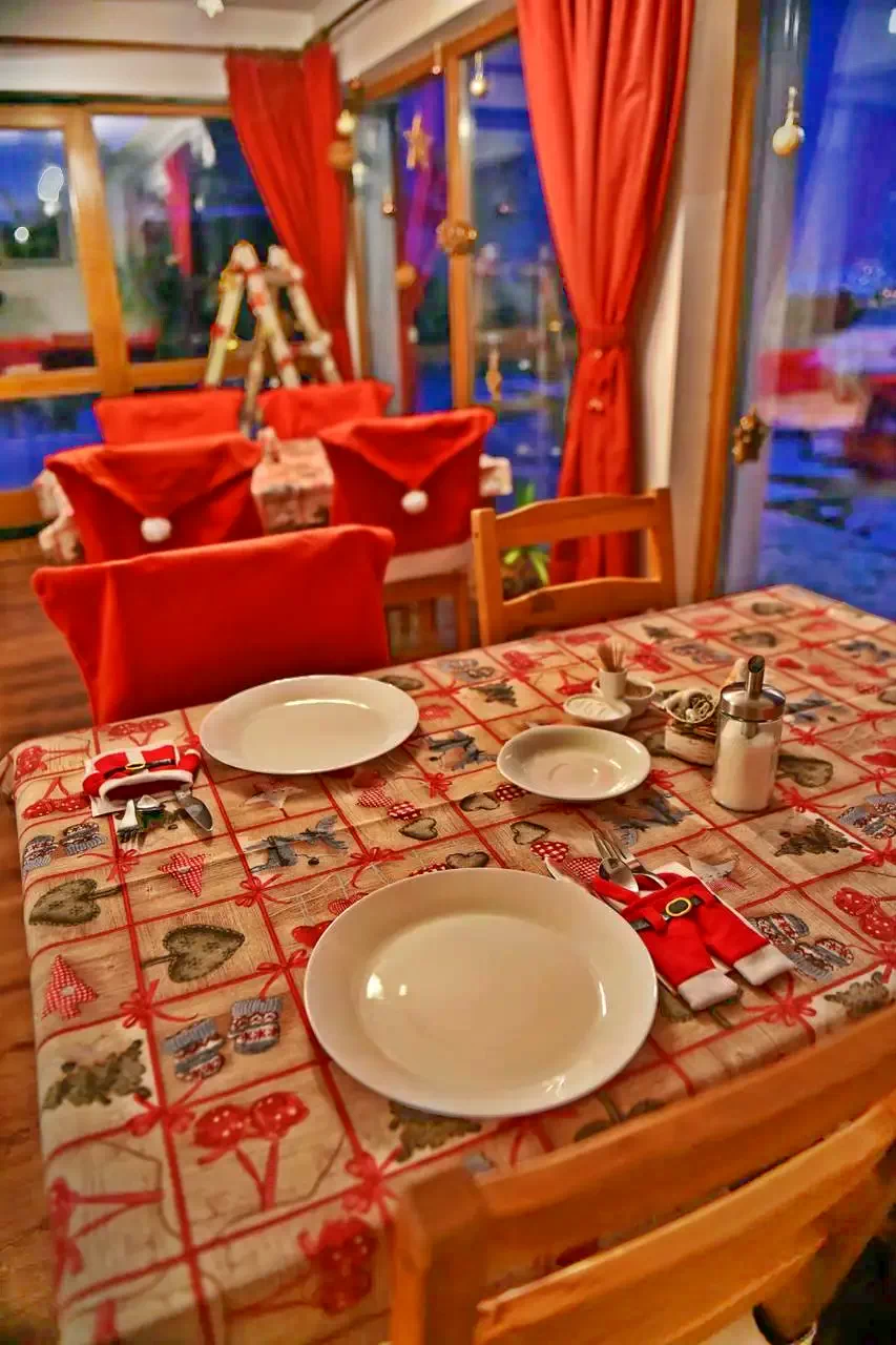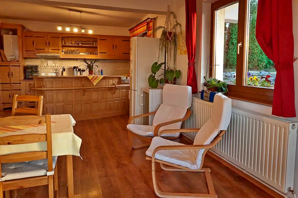 - Az otthonos berendezésű ebédlőhöz modern, teljes felszereltségű konyha tartozik.