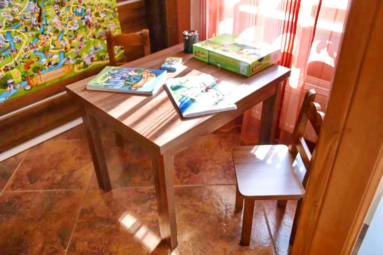 • Amennyiben kényelmesen szeretné elfogyasztani reggeli kávéját, elolvasná, meghallgatná vagy megnézné a friss híreket, megteheti ezt a panzió tágas nappalijában. Közben gyerekei a gyereksarokban játszhatnak.