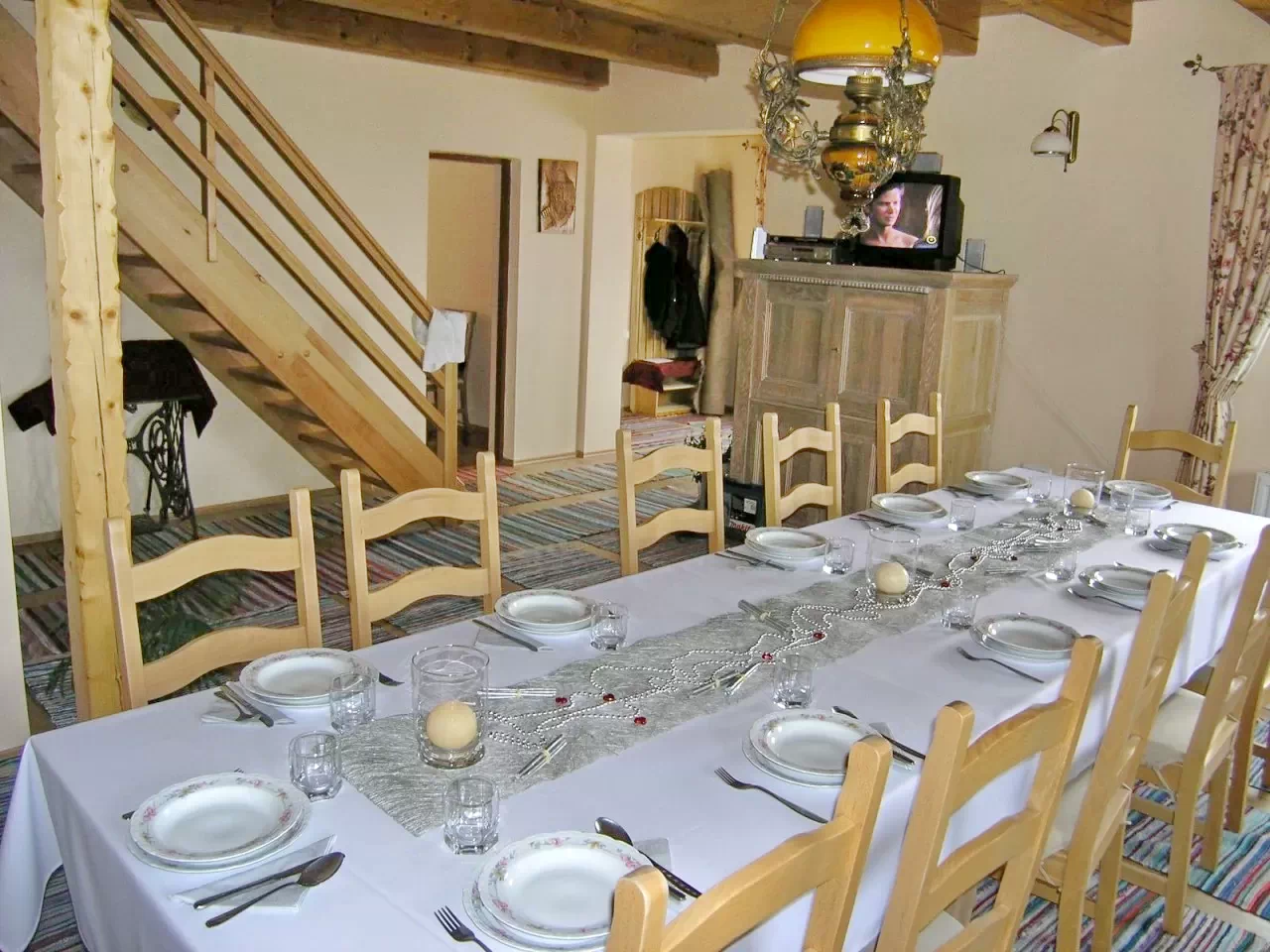 Az étkezések az elegáns ebédlőben, illetve a nappali-ebédlő közösségi terében történnek.