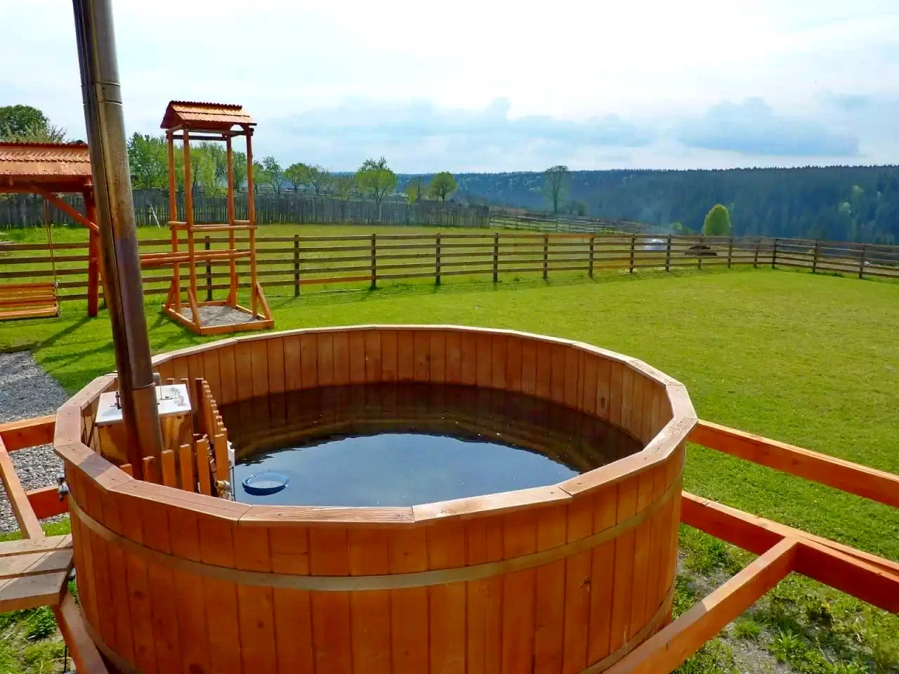 Bármely évszakban használható, fűthető vizes dézsa áll kedves Vendégeink rendelkezésére. A 2 méter átmérőjű, 120 centiméter mély, 3500 liter vízzel feltöltött "Székely Jakuzzi" 6-8 fő kikapcsolódását biztosítja. Mivel a dézsa üzembe állítása (vízleeresztés, kimosás, fertőtlenítés, feltöltés és felfűtés) az adott évszaknak megfelelően 12-15. órát vesz igénybe, ezért ha igénybe szeretnék venni, kérnék szépen legalább két nappal az ideérkezésük előtt szíveskedjenek jelezni ezen szándékukat.