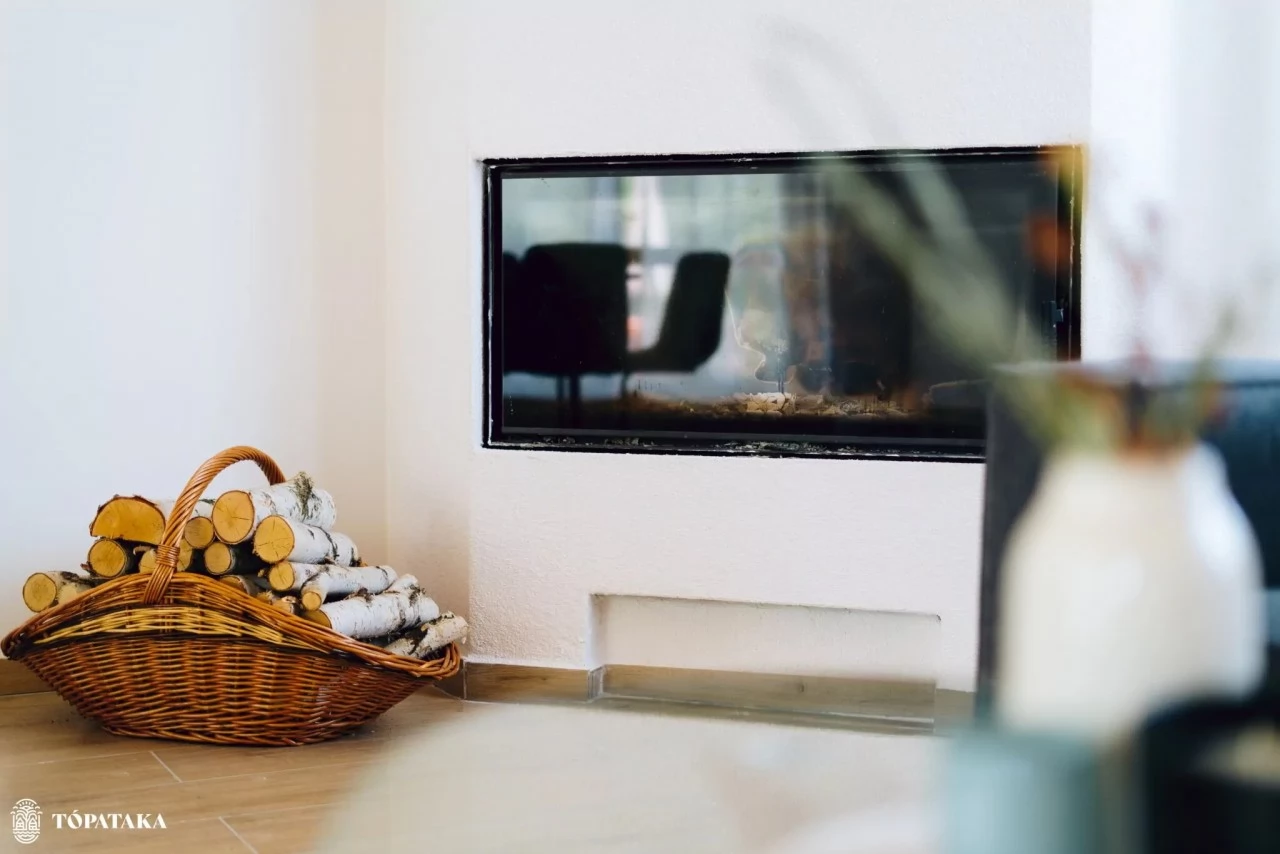 - Kandalló a nappaliban, amely kellemesen otthonos hangulatot biztosít