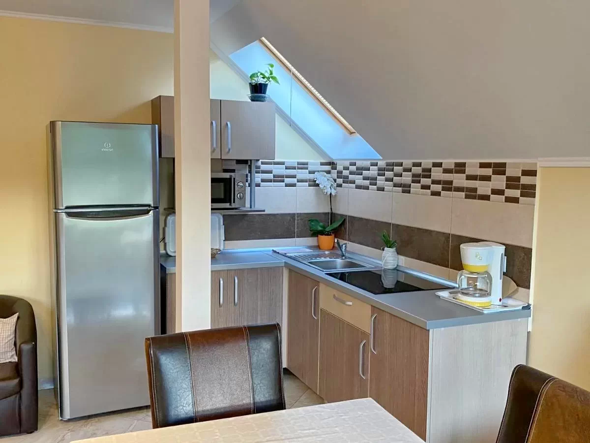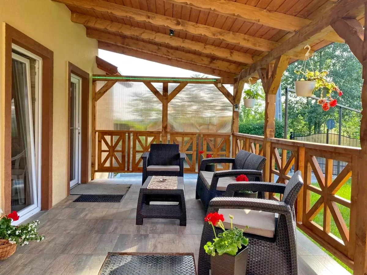 Felszerelt konyha, tágas nappali-étkező és födött terasz szolgálja vendégei kényelmét.