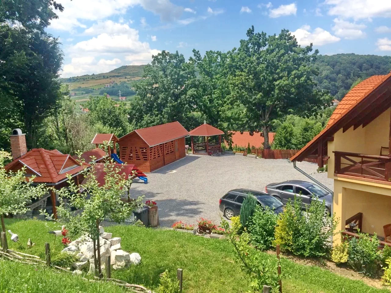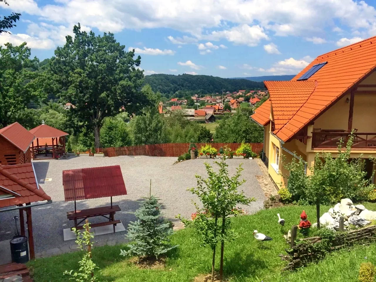 - Kilátás a hegyekre, a belső udvarra, a kertre és az erdőre