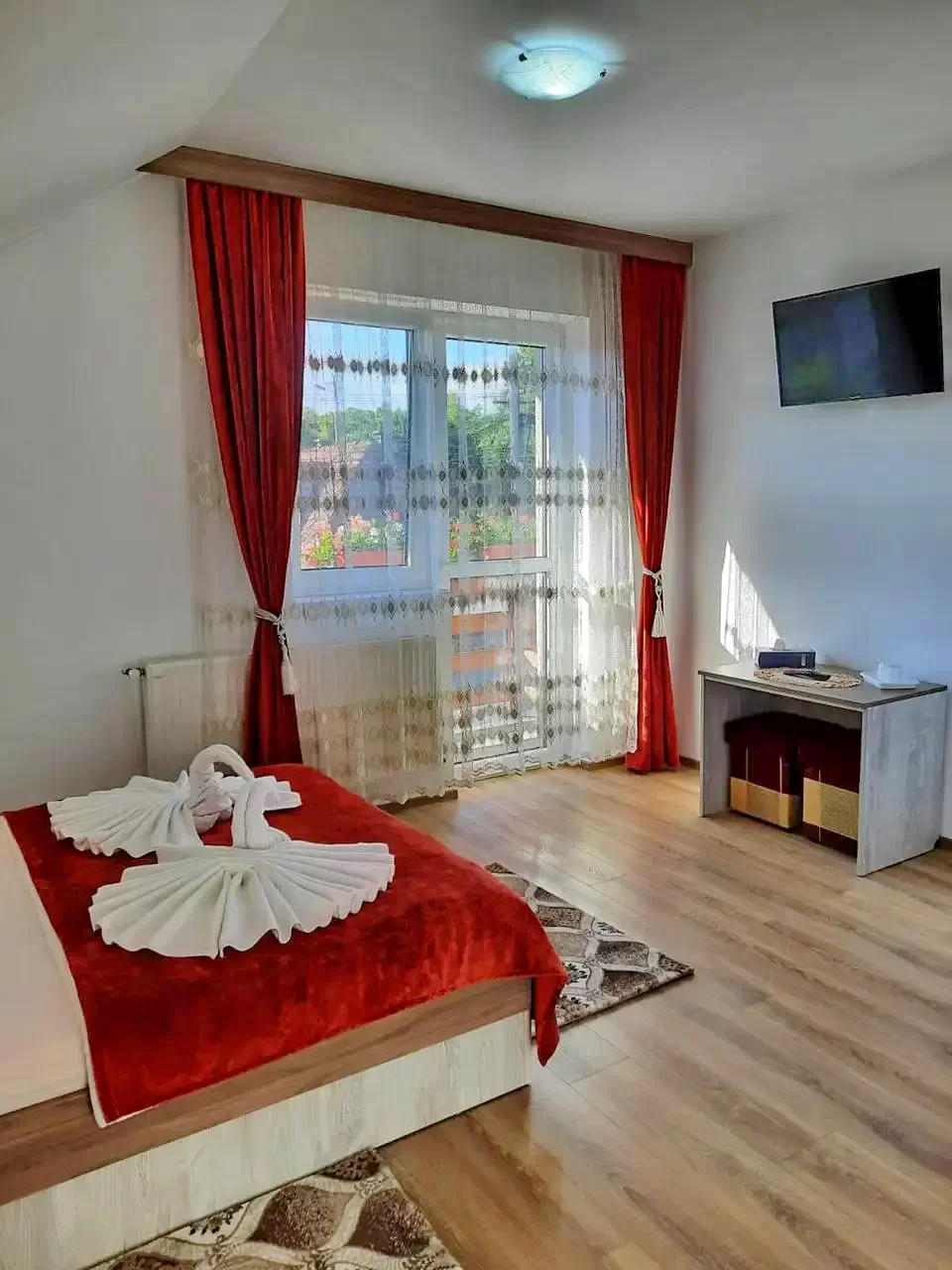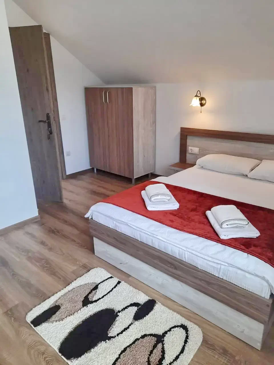 - 1 luxus szoba franciággyal és egy kihúzható kanapéval - saját fürdőszobával, TV-vel és konyhasarokkal
