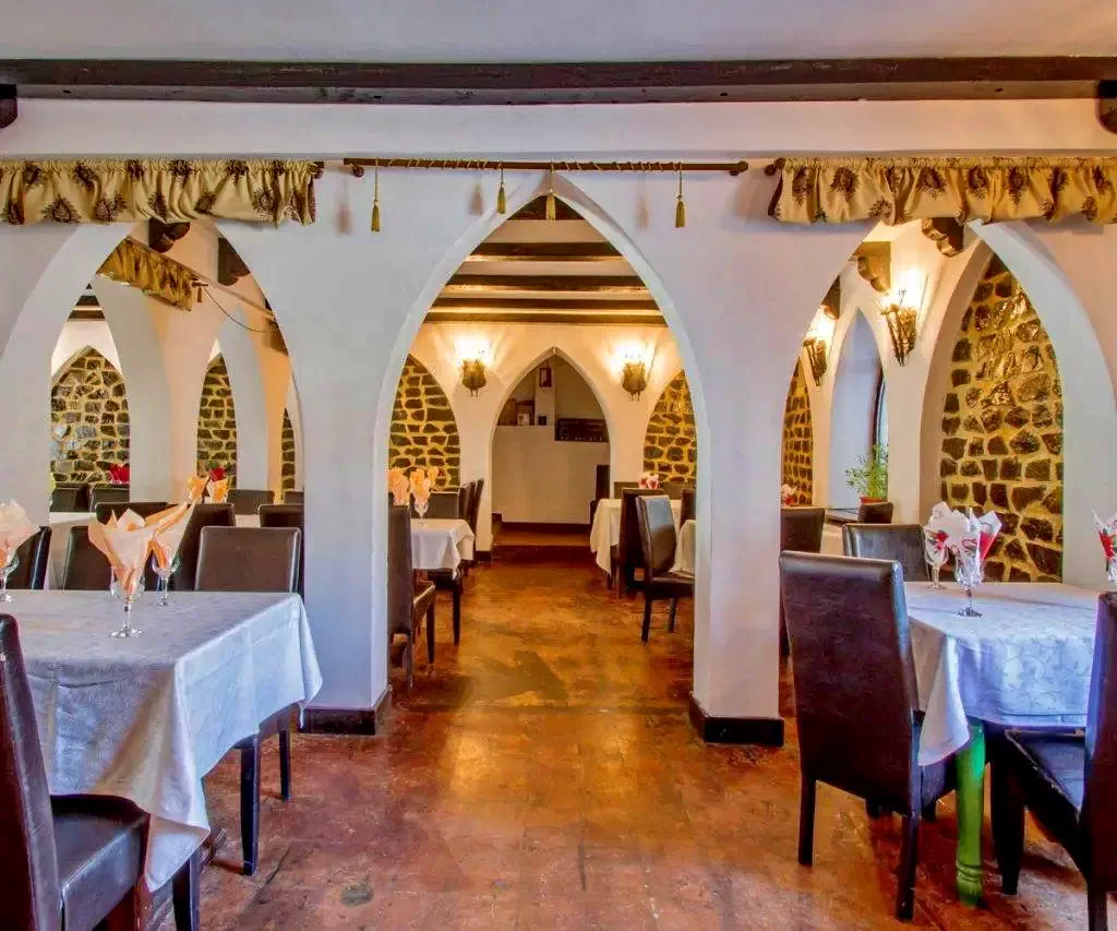 - A helyszínen egy román specialitásokat kínáló étterem elérhető, 90 férőhellyel. A hely rusztikus hangulata biztosítja a hagyományos középkori hangulat megteremtését.