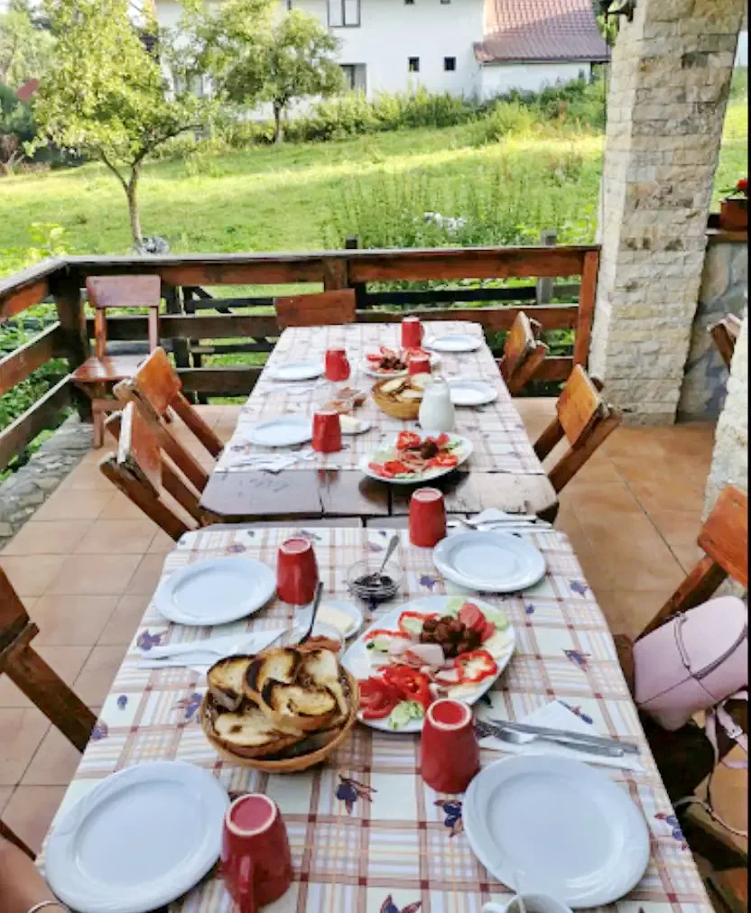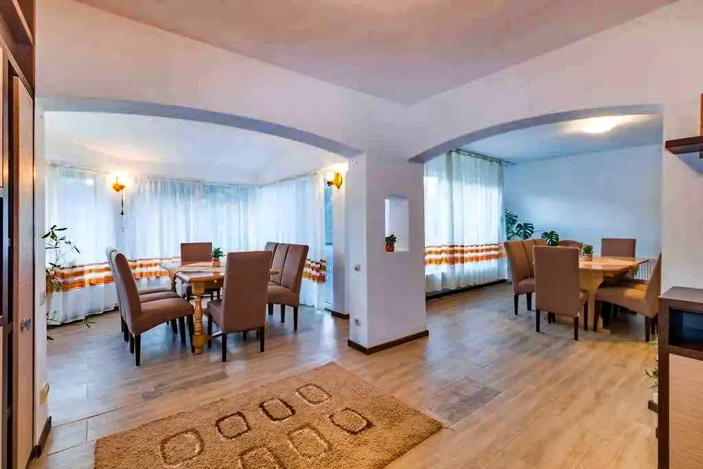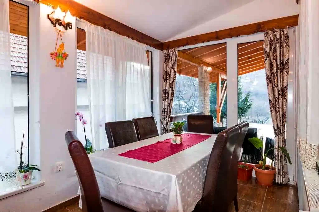 A vendégház földszintjén a teraszon mellett található egy tágas ebédlő, amely jól használható ünnepi étkezések, esküvők, keresztelők, stb., alkalmából, de akár konferenciateremmé is alakítható.