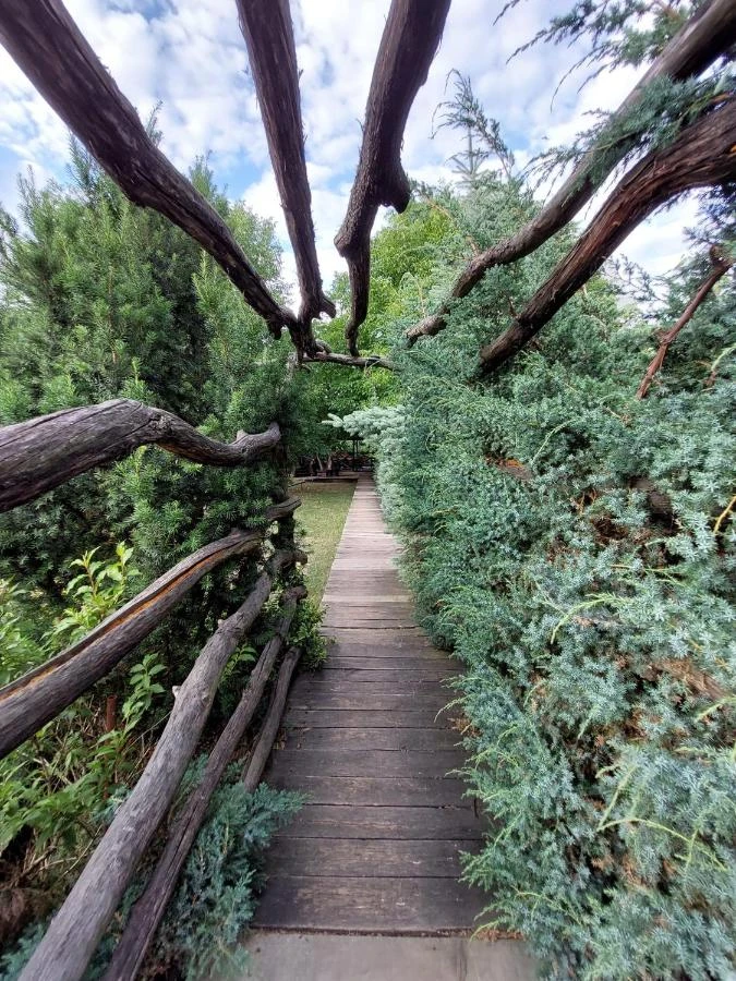 - Parkosított kert: Pihenőhelyek és sétára alkalmas területek.