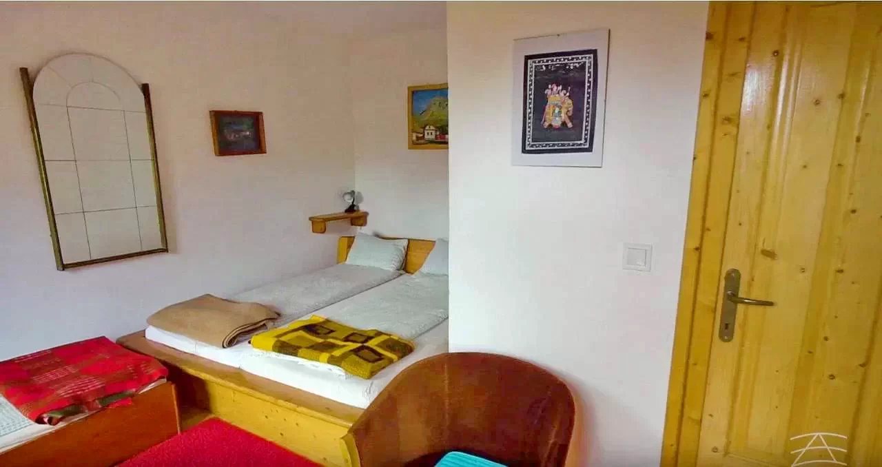 5-ös szoba – tornácról balra, első szoba: 3 szóló ágy → 3 fő, saját fürdő