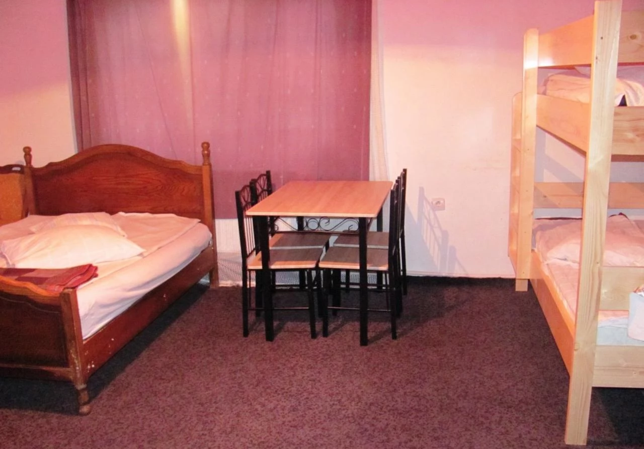 - 1 négyszemélyes szoba (franciaágy és emeletes ágy).