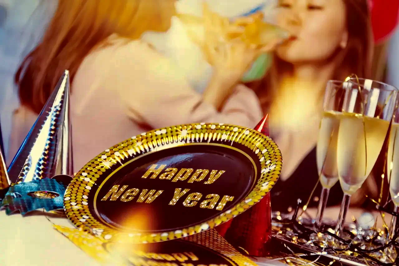 Pezsgő az éjfél megünneplésére