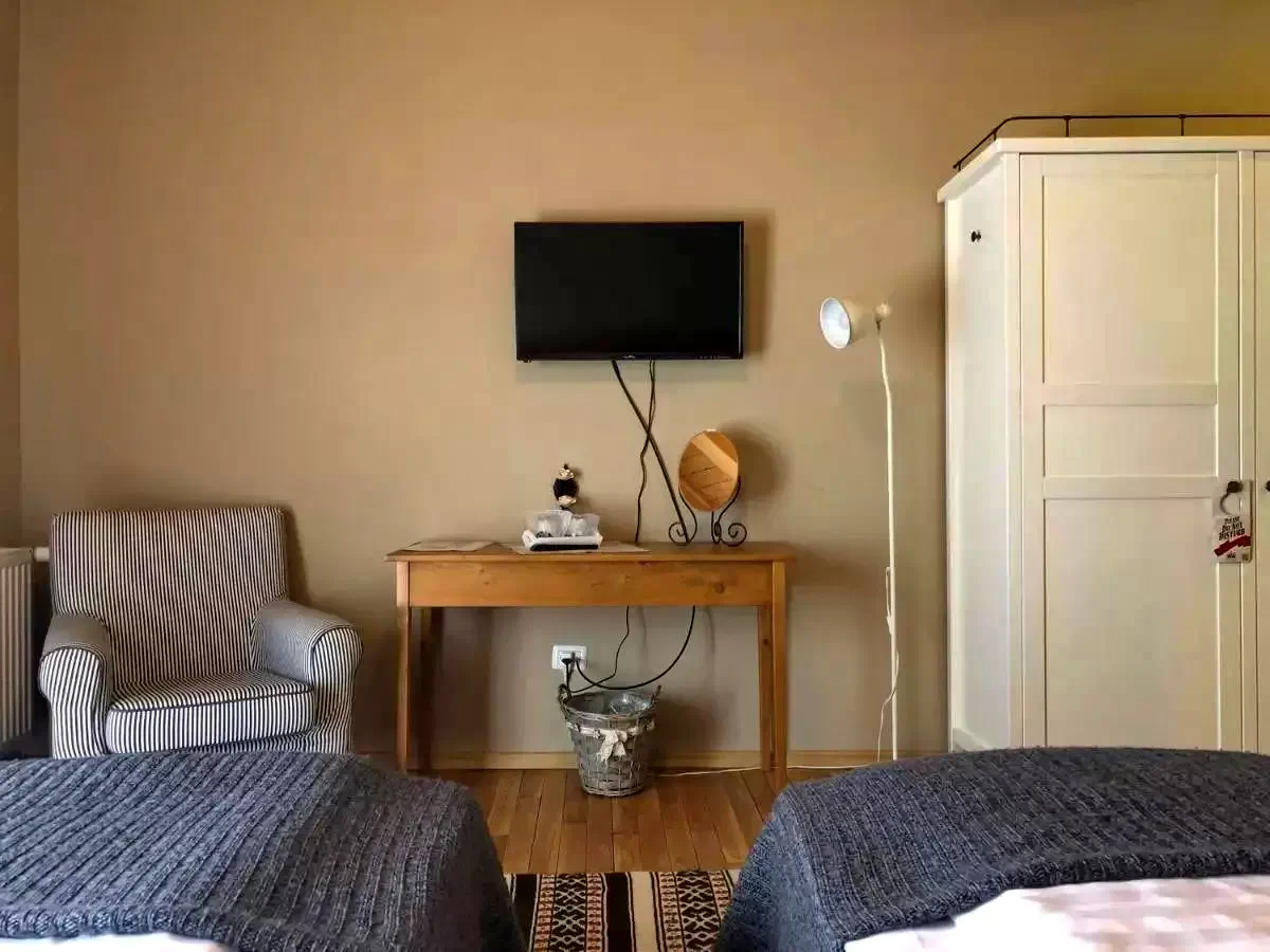 A tömör fa, a parketta és a természetes szálas szövetek (vászon, pamut) elegánsan vannak kombinálva, valamint a meleg, harmonikus színek, bútorok és régi tárgyak, amelyek meghitt otthoni légkört teremtenek a panzióban.