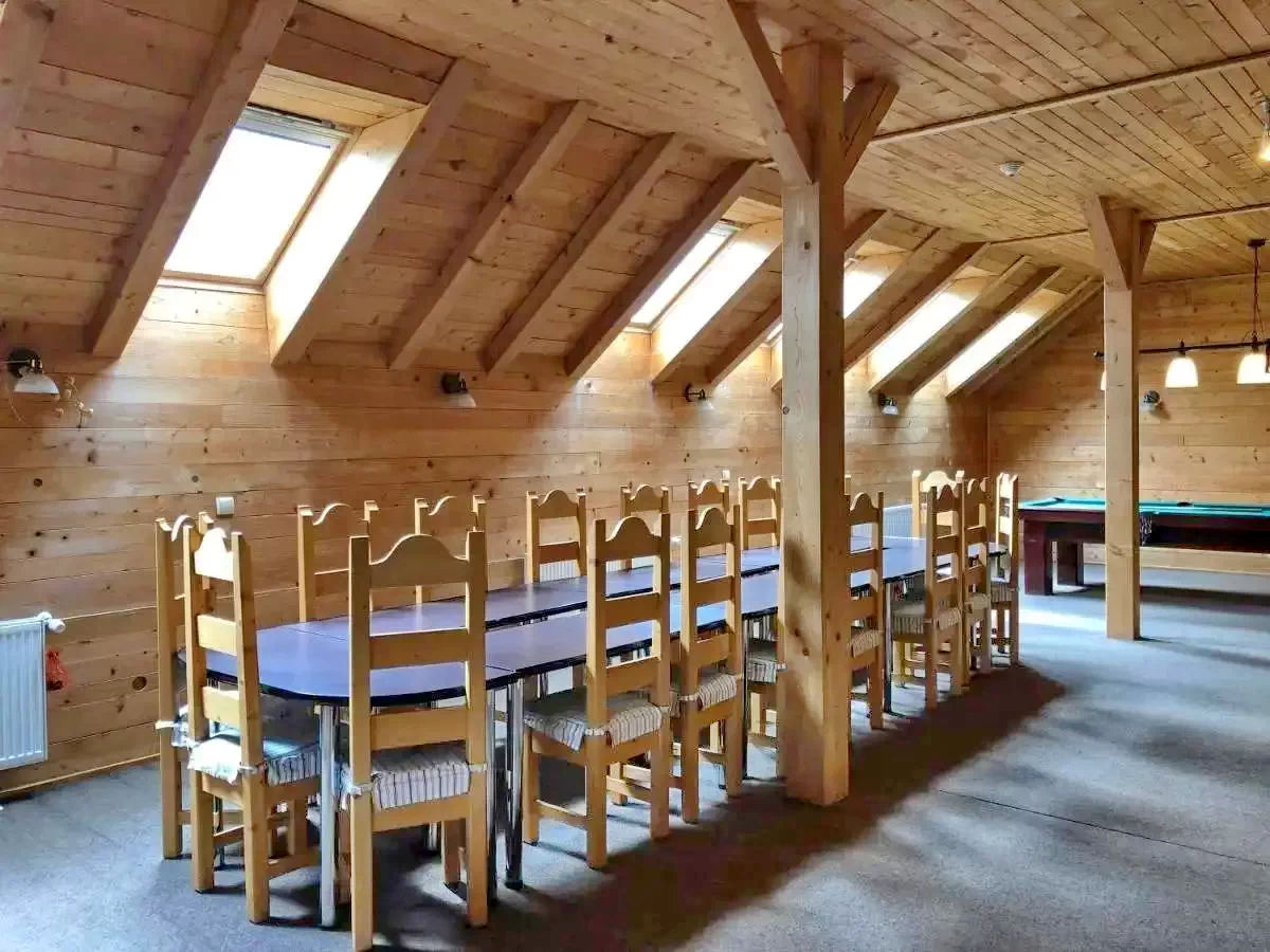- nagy étterem (kb. 75nm) kandallóval, színes TV-vel,