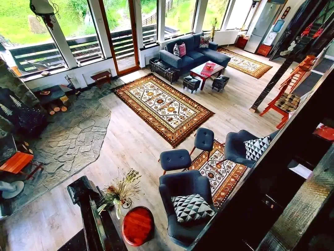 - Egy 75 nm-es egyterű nappali található, ülősarokkal, kinyitható kanapéval, teljesen felszerelt konyhasarokkal (önellátó), hűtőszekrénnyel, étkezővel és kandallóval.