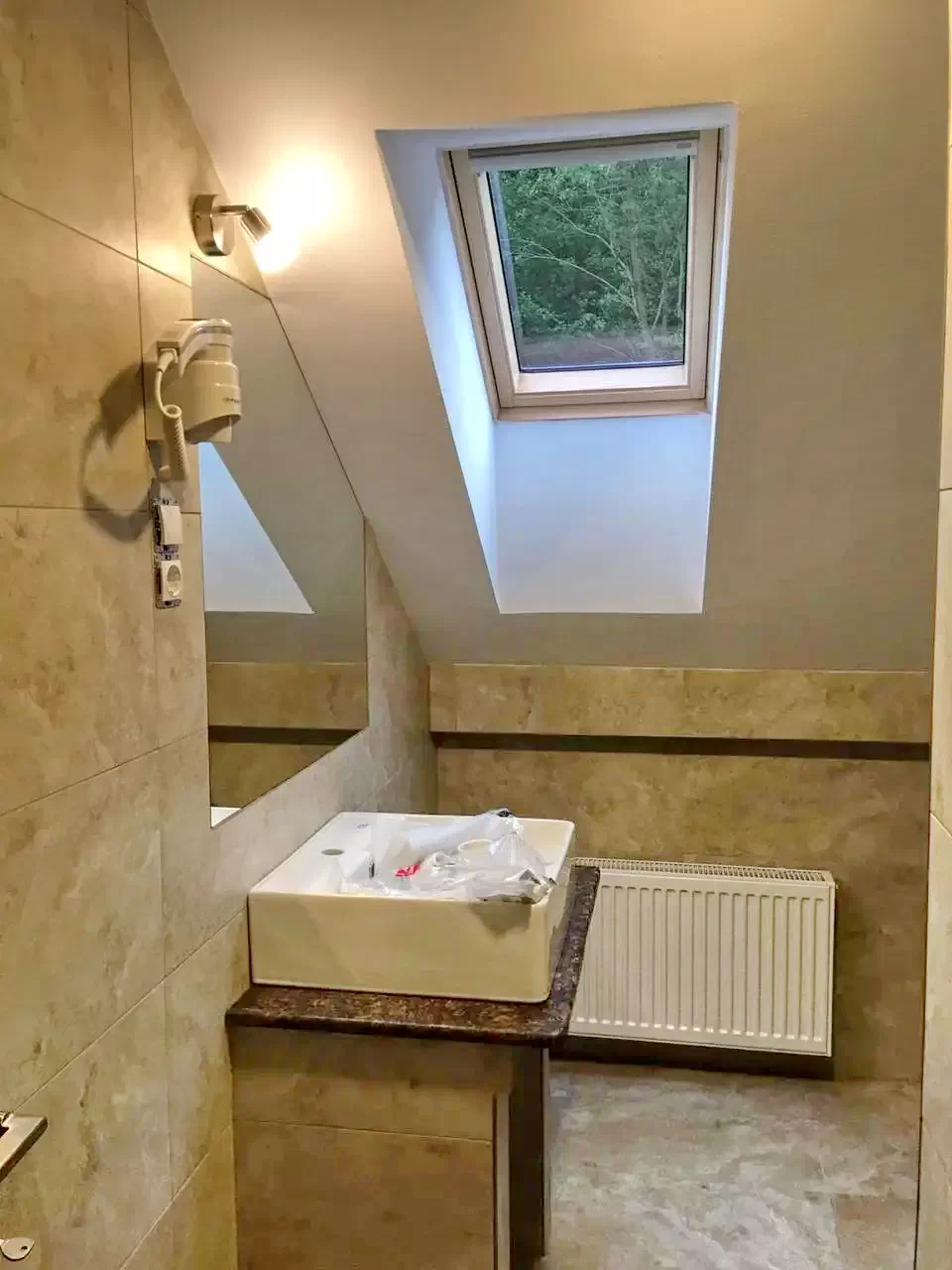 - Az udvaron patak és erdő található, továbbá focipálya, játszótér gyerekeknek, felnőtteknek hinták, parkoló és sok szabad tér.