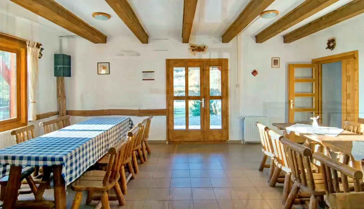 Konyhája és ebédlője alkalmas kisebb (20-25 személyes) családi vagy munkahelyi rendezvények, értekezletek lebonyolítására.