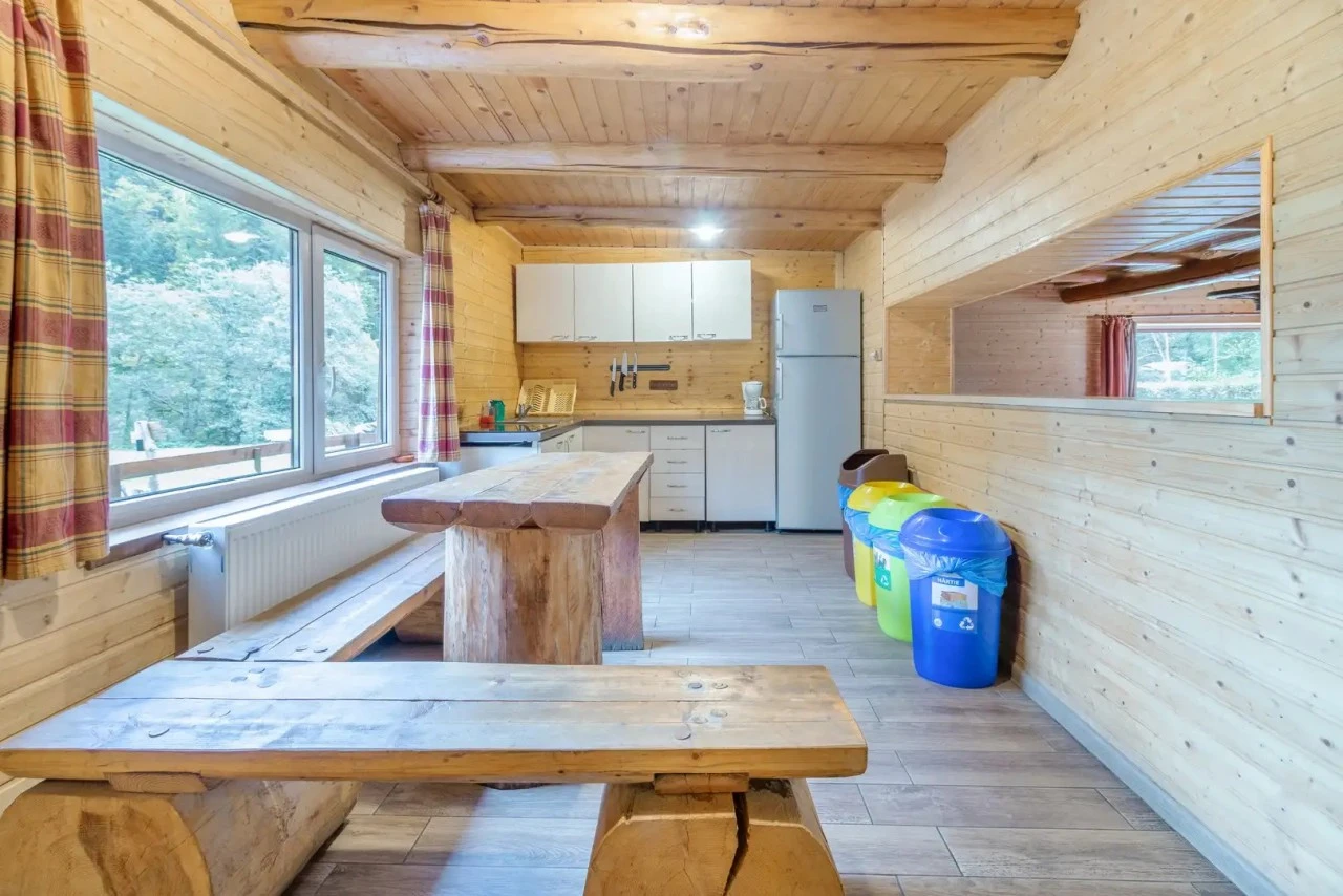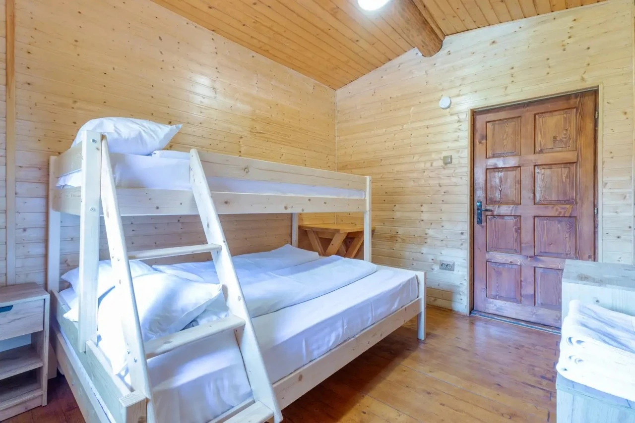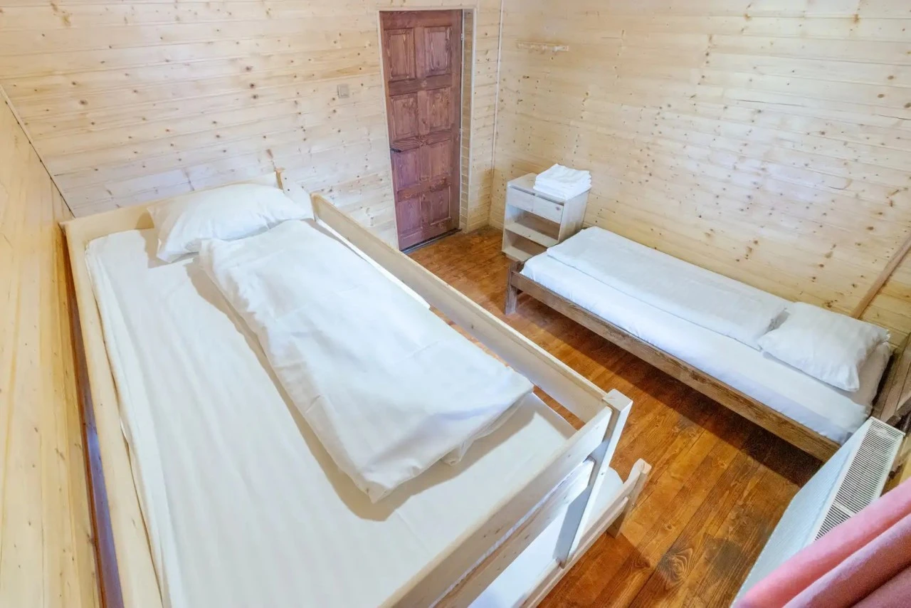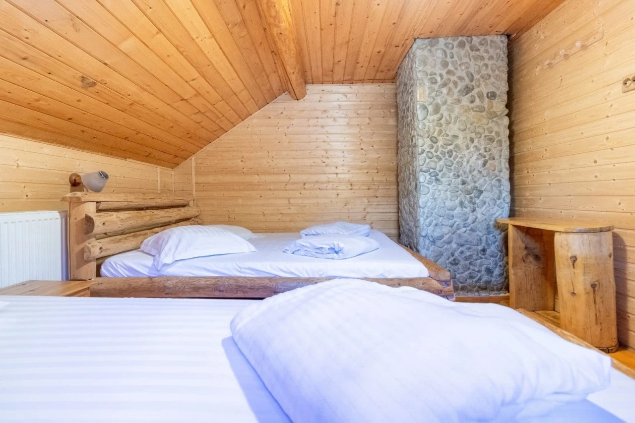 - Emellett a rusztikus fa házaként működő Calineț (6 fő), Baciu (10 fő) és Tămaș (17 fő) kabinok kínálnak autentikus élményt, tágas nappalival, felszerelt konyhával és grillezővel, ahol a természet közelsége garantált.