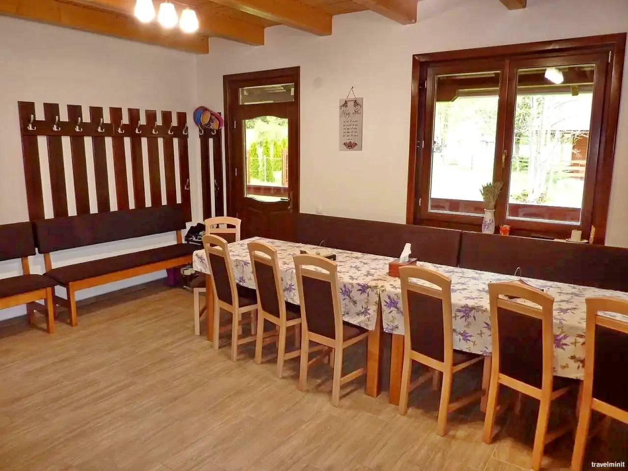- A nappali-ebédlő tágas étkezőasztala tökéletes családi vagy baráti étkezésekhez.