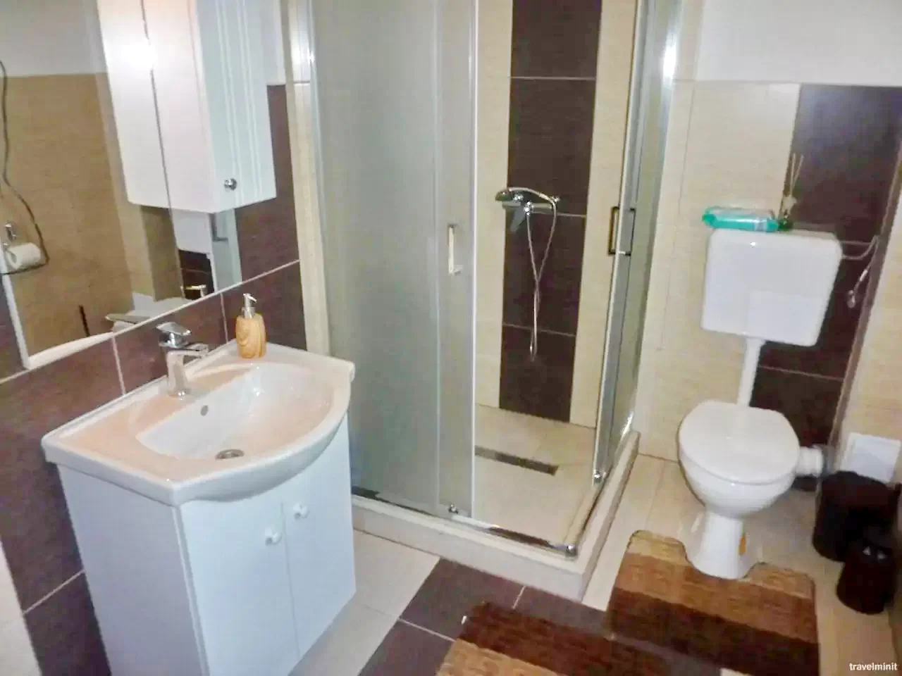 Fürdőszobák: Egy zuhanyzóval, egy fürdőkáddal (mindkettő WC-vel, kézmosóval).