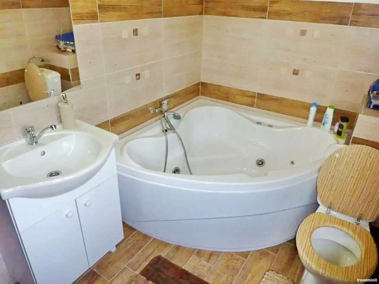 szoba: 1 kétszemélyes ágy + 1 egyszemélyes ágy (3 fő) A házban két fürdőszoba található (egy zuhanyzóval, egy fürdőkáddal, mindkettő WC-vel és kézmosóval), minőségi ágyneművel és kéztörlőkkel.
