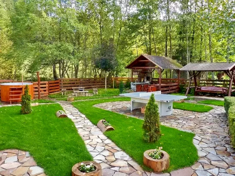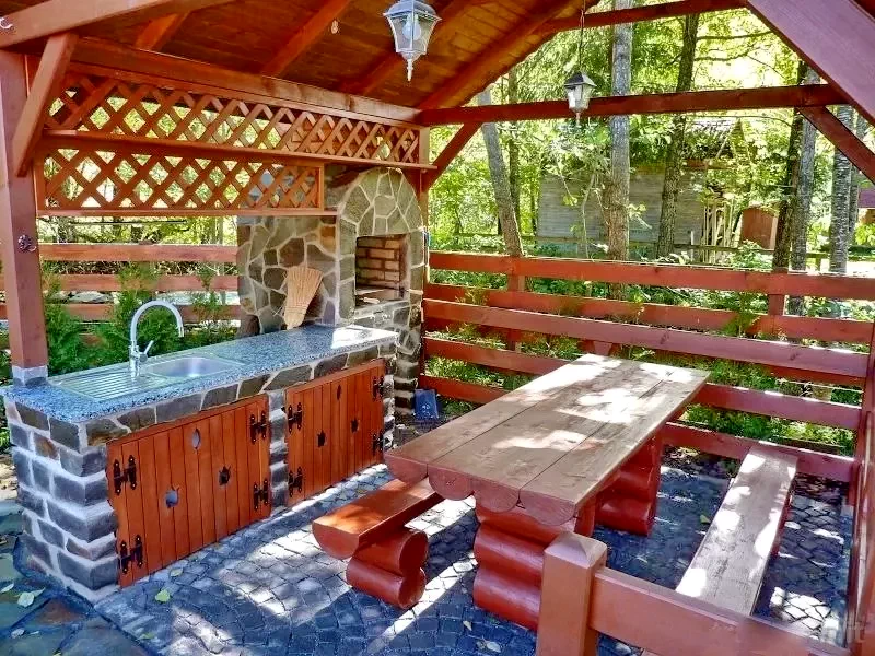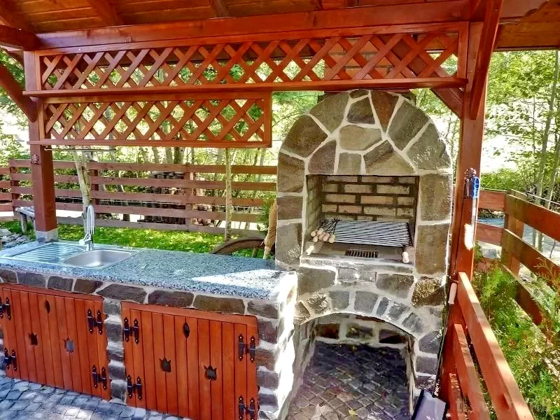 - A fedett filagória és kerti kiülő tökéletes helyszínt biztosít a közös étkezésekhez vagy esti beszélgetésekhez.