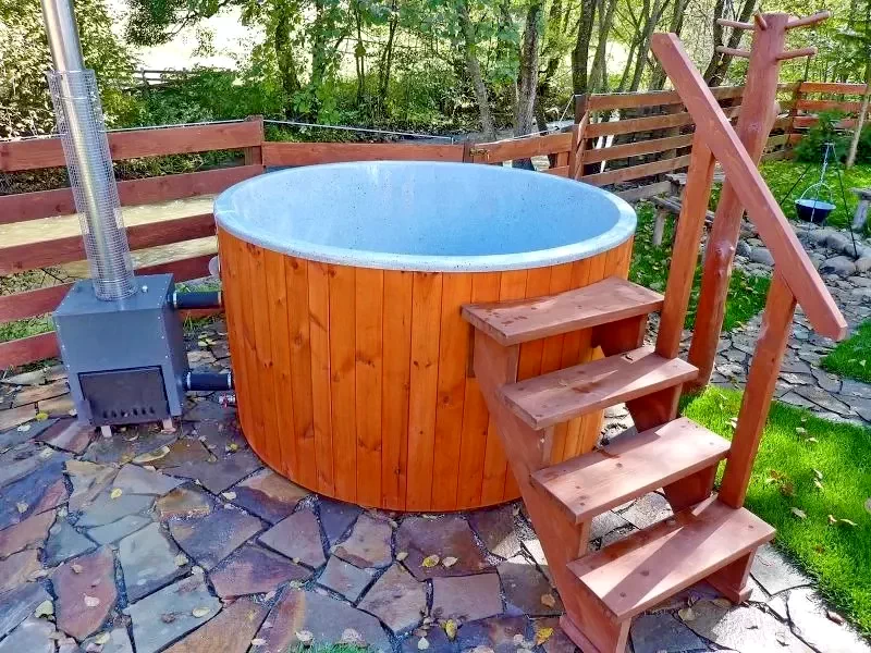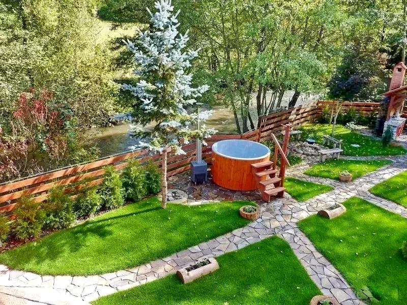 - Fűthető székely jakuzzi (4–6 fős) és kültéri szauna.